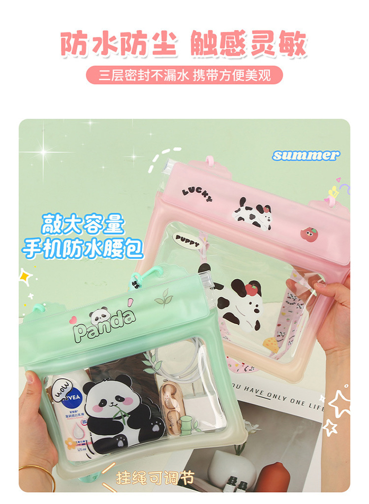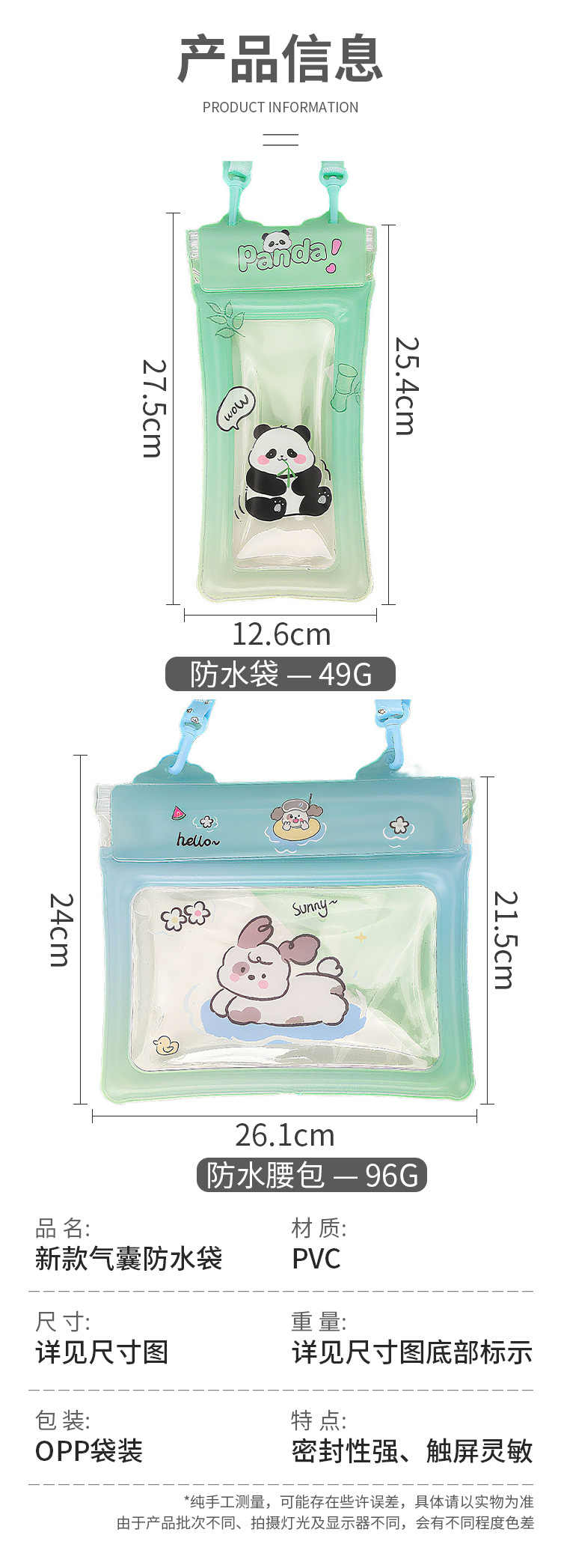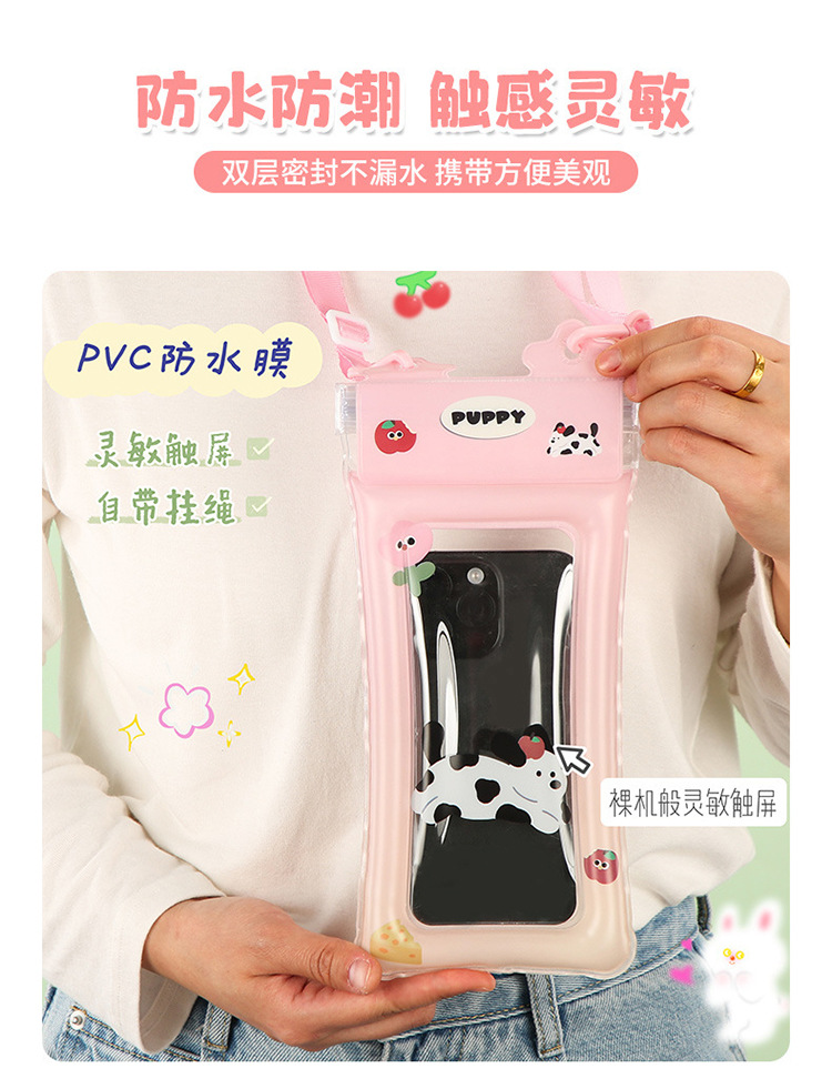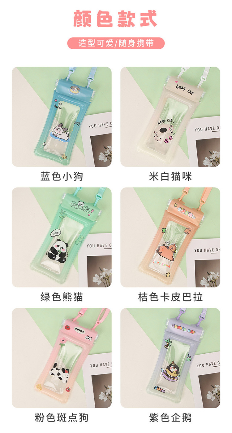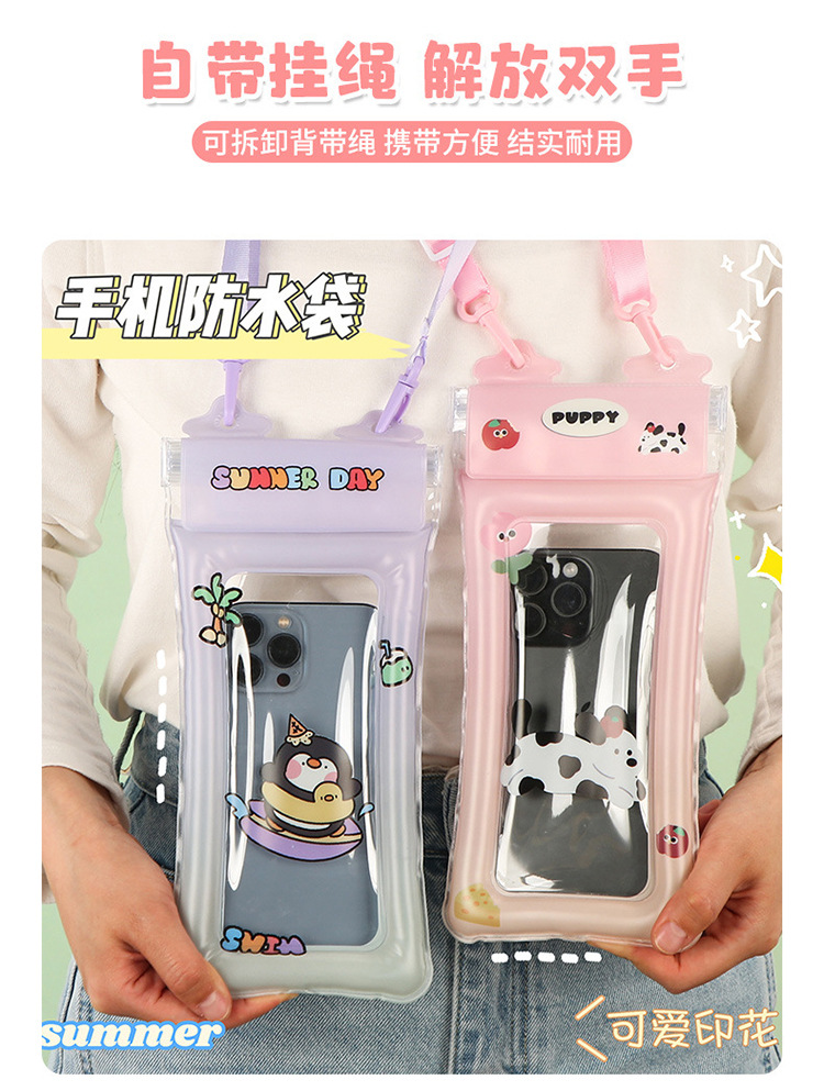 かわいいアニメの大きなストラップの携帯電話のエアバッグの防水袋は屋外でタッチパネルで泳ぐことができます。