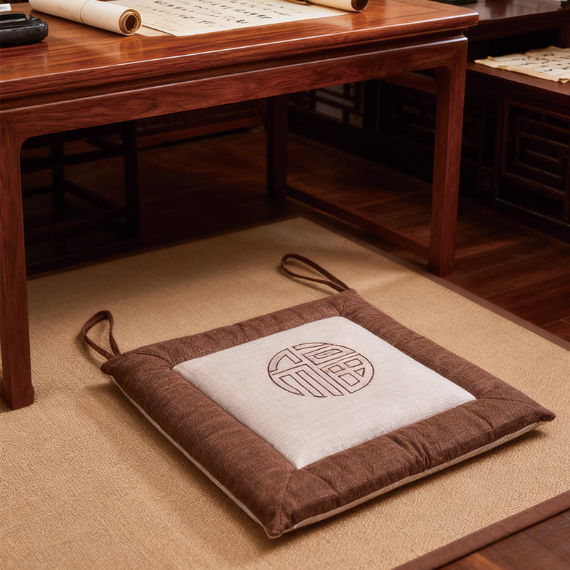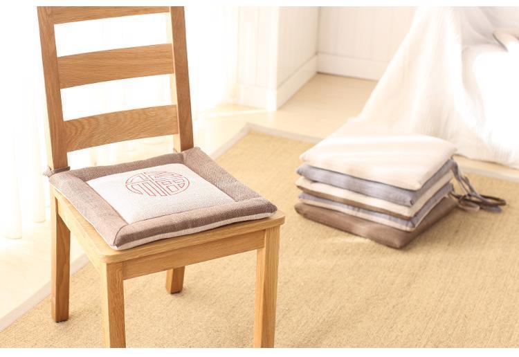 亚麻椅子坐垫办公室椅垫家用餐桌椅榻榻米垫凳子刺绣学生新中式风