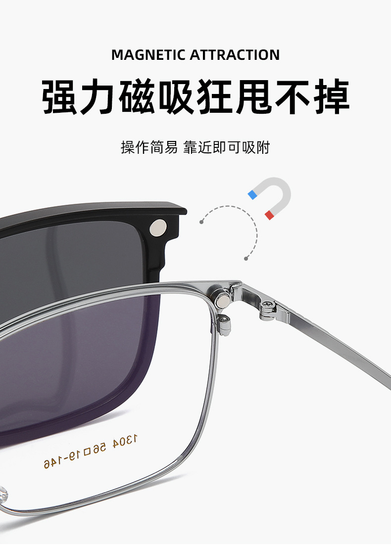 メンズメタルサングラススリーインワン偏光磁気サングラス近視メガネフレーム1306を装備可能