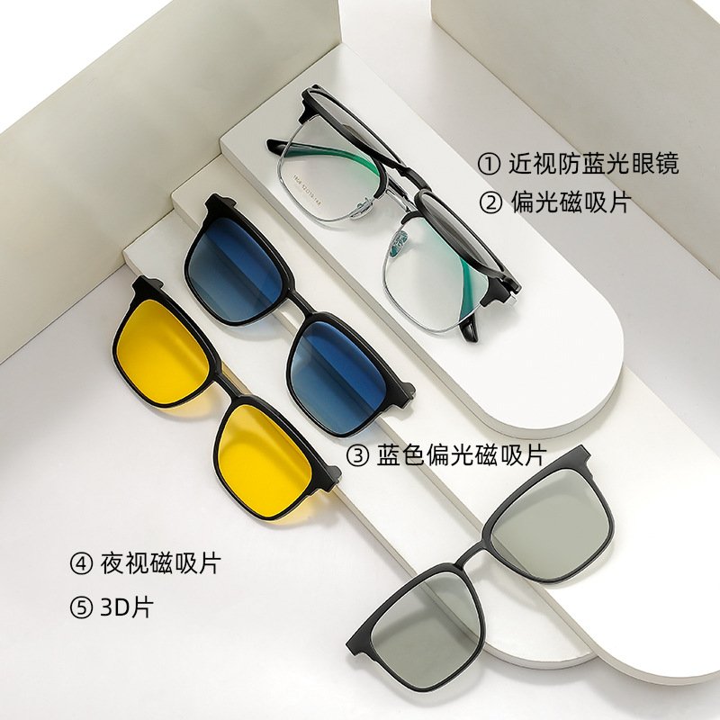 欧美外贸磁吸套镜五片装弹簧腿多色太阳镜两用配近视眼镜方框偏光