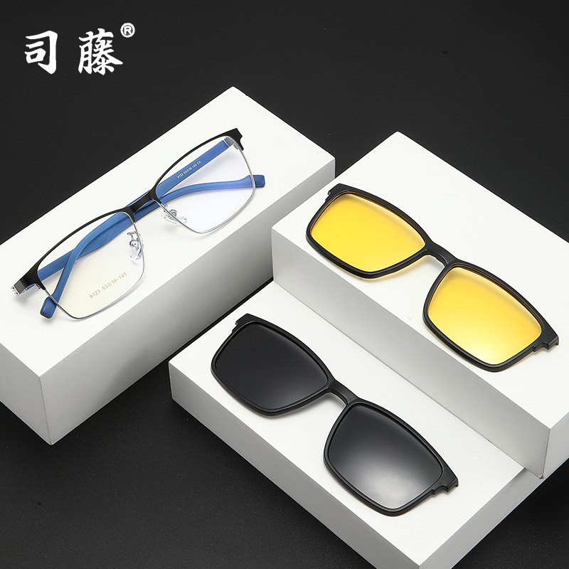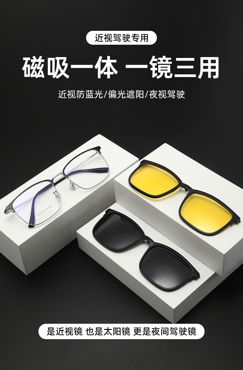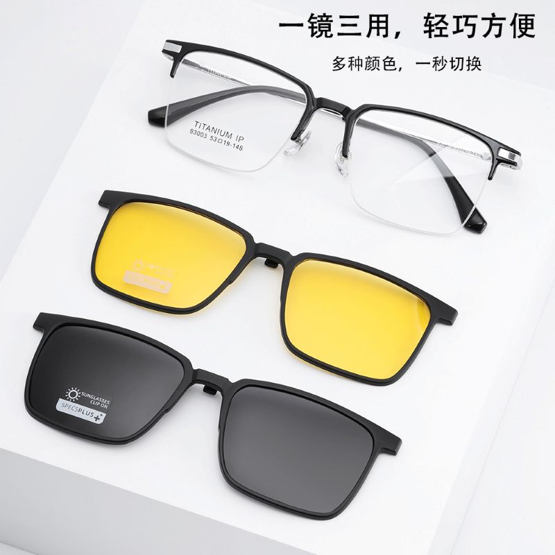 现货磁吸半钛套镜近视偏光太阳墨镜开车夜视三用眉线框抖音爆款