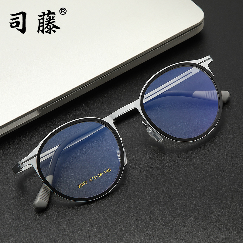 2007 新しいビッグブランドレトロメガネフレームメタルラウンドフレームメンズ高近視フレームメタルフェルールメガネバッチ