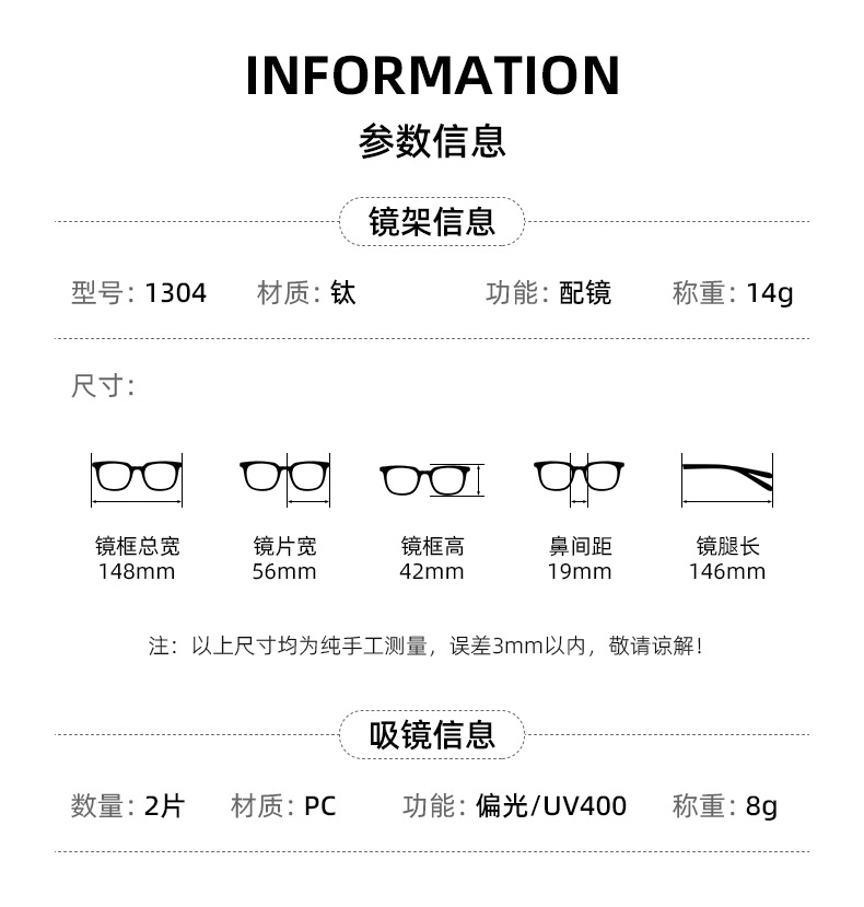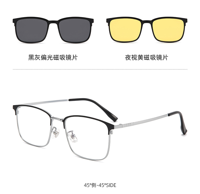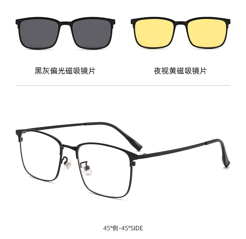 LB2188纯钛眼镜方形三合一铝镁磁吸套镜男开车钓鱼偏光夜视片配镜