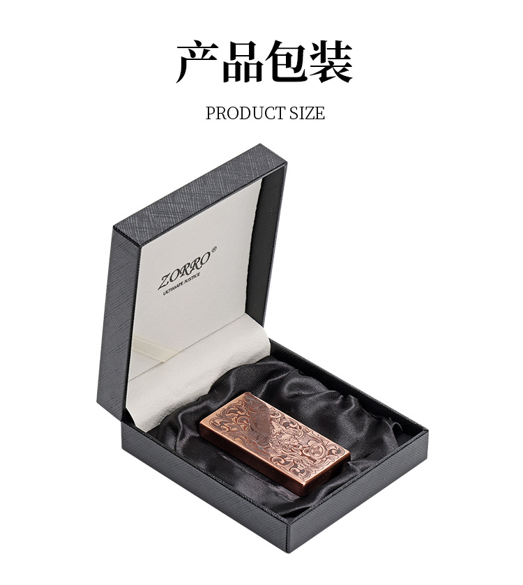 ゾロZORROライターリフト純銅彫刻灯油火機プッシュプル点火Z739マッチボックス