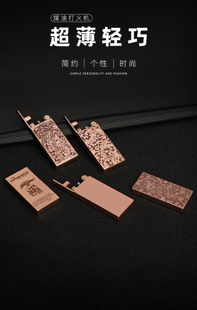 ゾロ灯油ライター753リフト元銅光板彫刻模様超薄側給油機バッチ代発