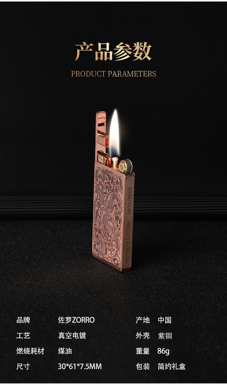 ZORRO佐羅紫銅手彫は旧ハレ灯油ライター男の個性創意正規品メーカーの卸売りをして送ります。