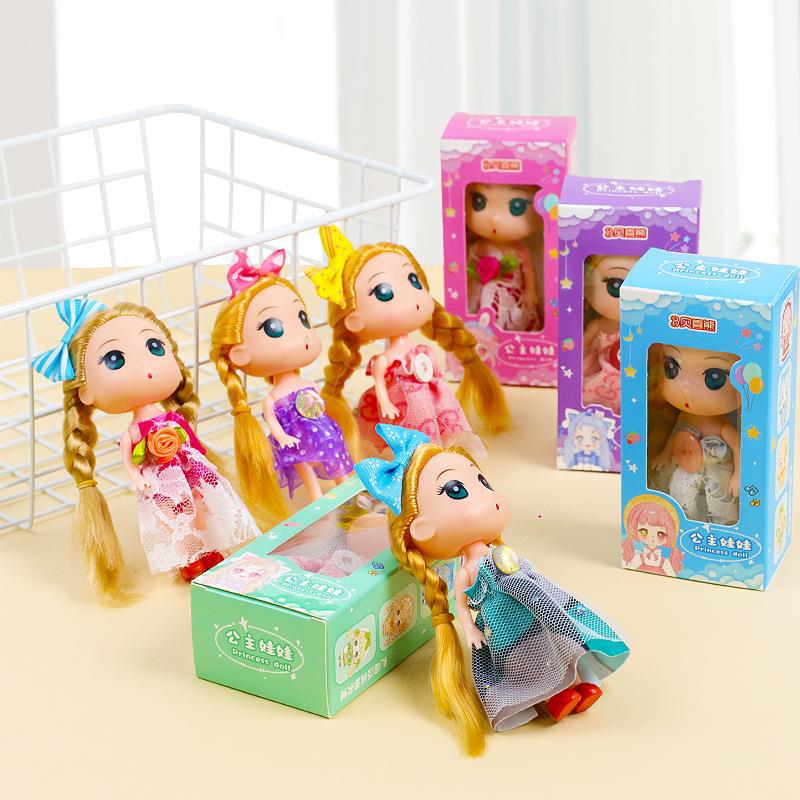 幼稚園の漫画の王女の人形の女の子は人形を交換します。
