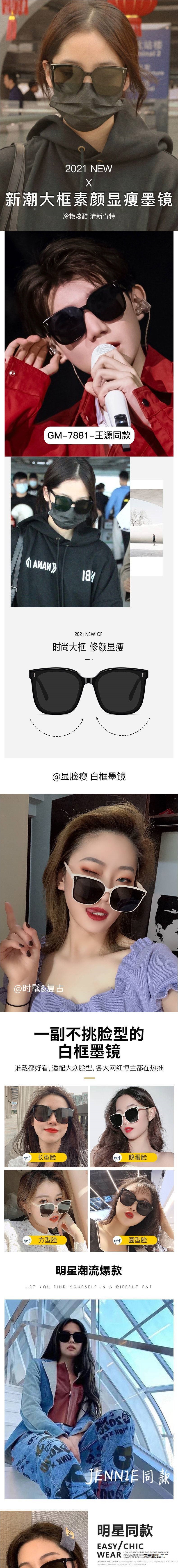 GM 韓国スタイルの男性と女性のためのサングラストレンディなサングラスインインターネットセレブサングラス大きな顔痩身抗 UV サングラス