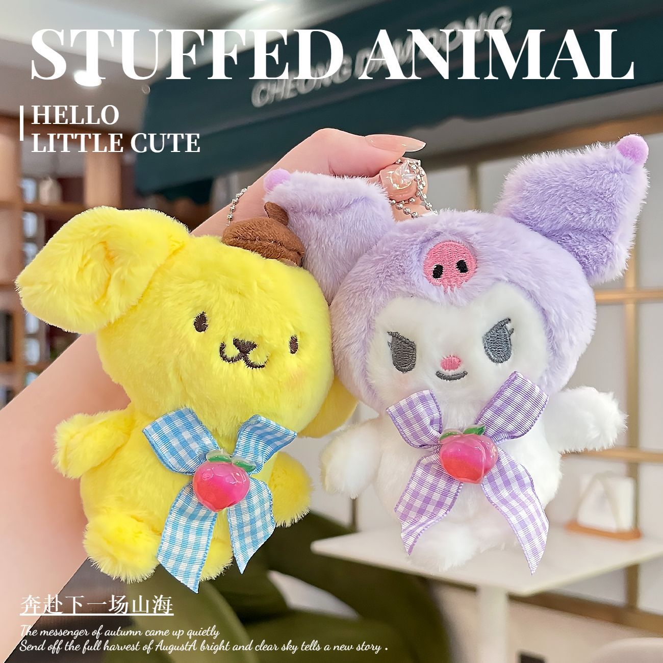 かわいいハローキティのホームキーホルダーペンダントの女性のアイデアのかばんには、子供をつかむ人形が飾られています