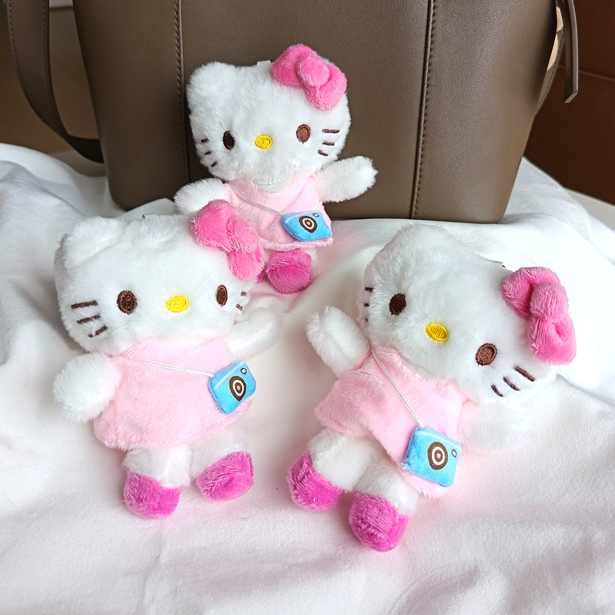 三丽日系可爱兔绒kt猫毛绒玩具精品爪机娃娃照相机挂件公仔钥匙扣