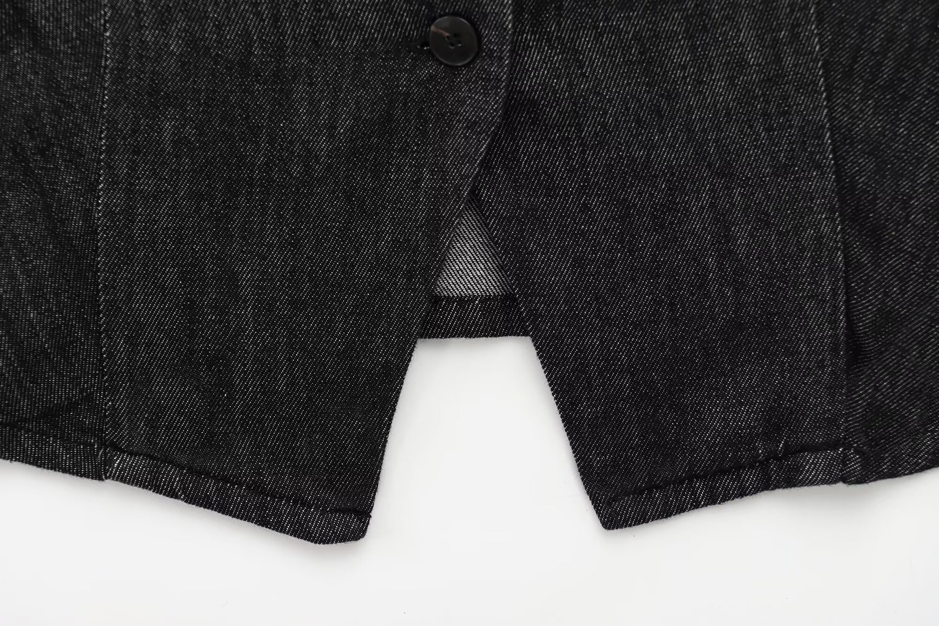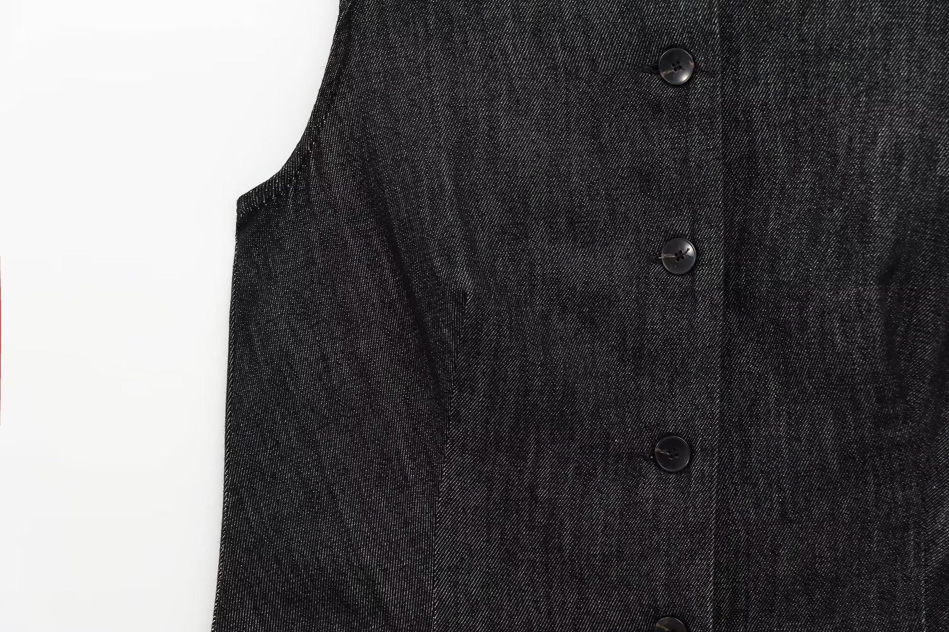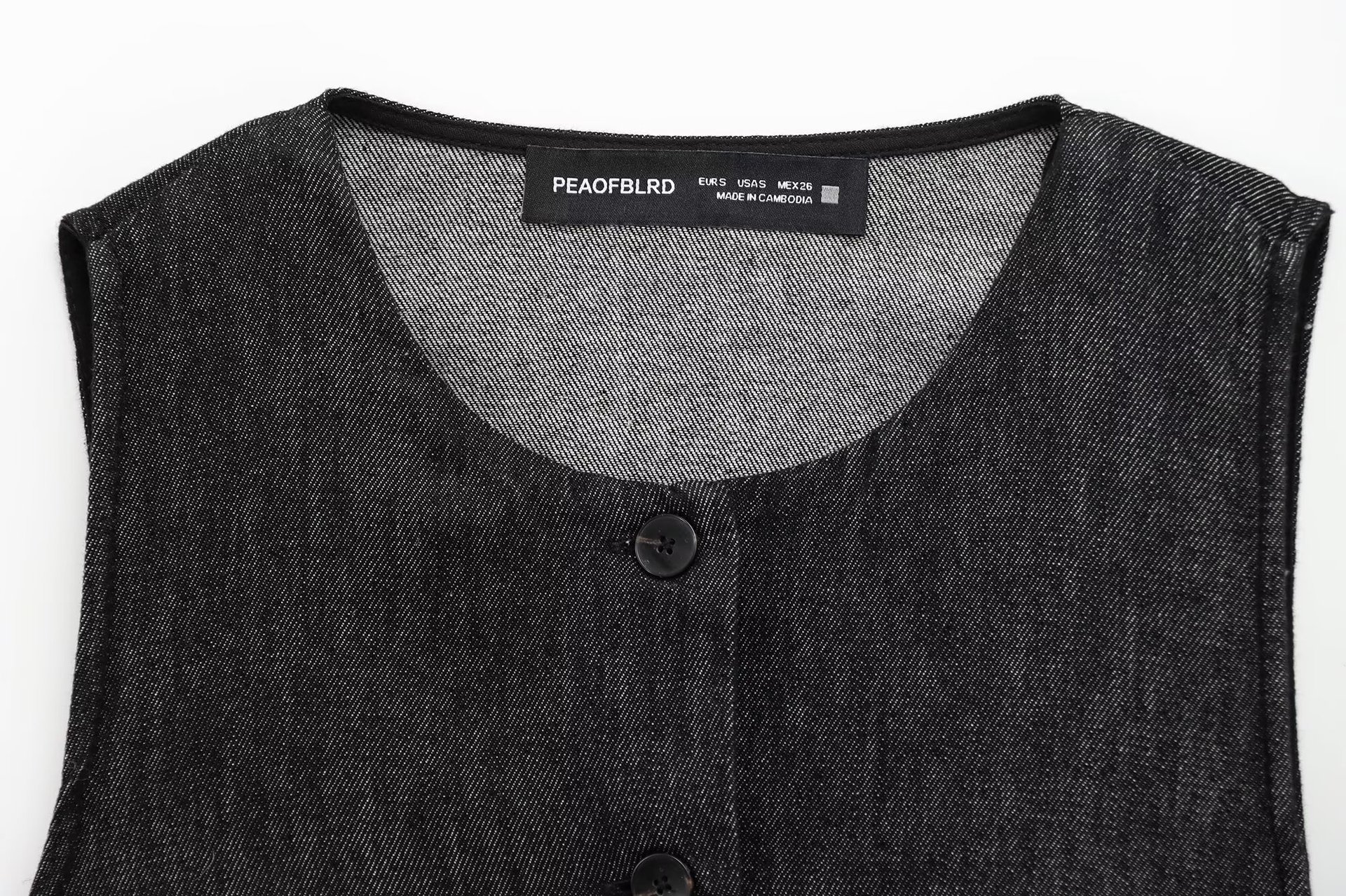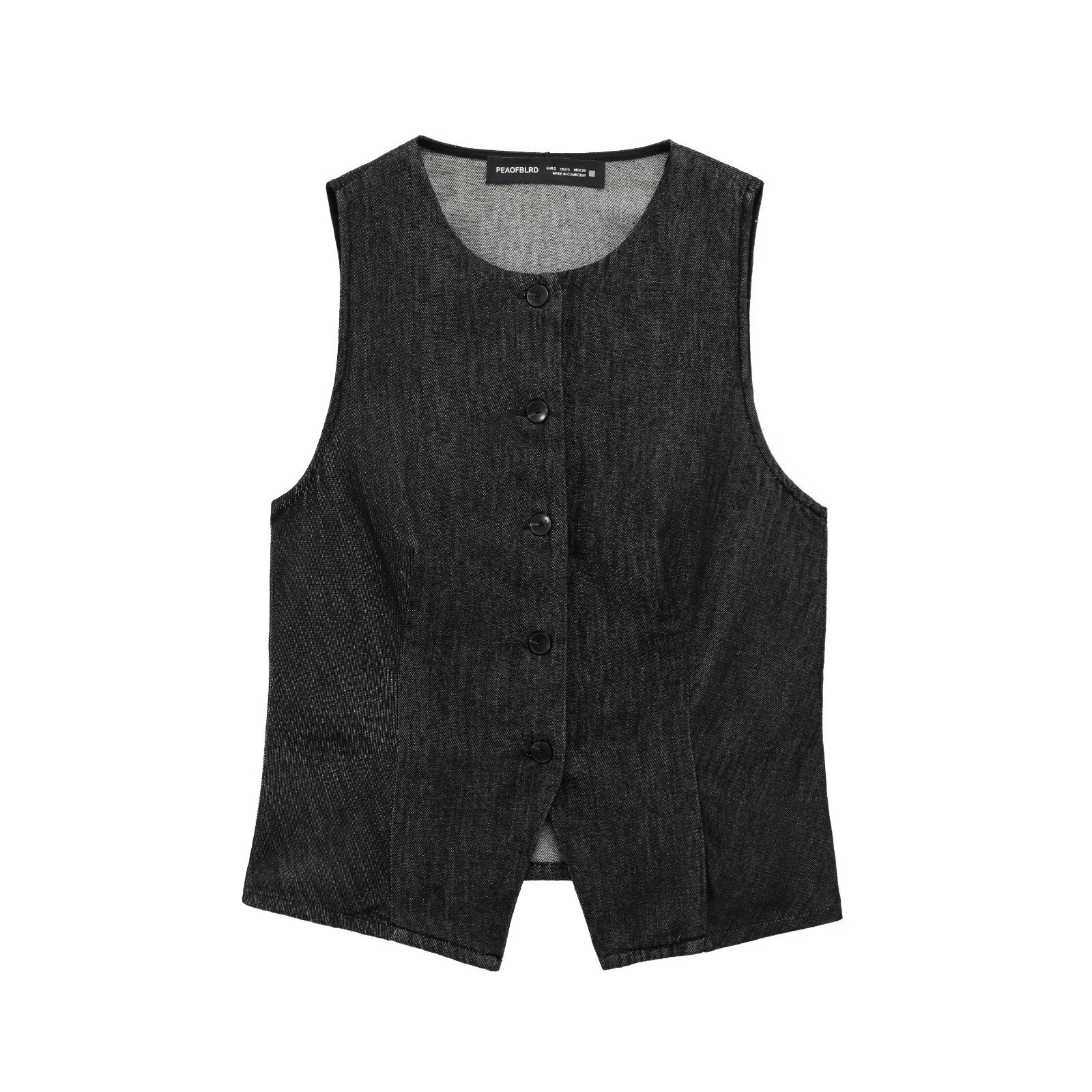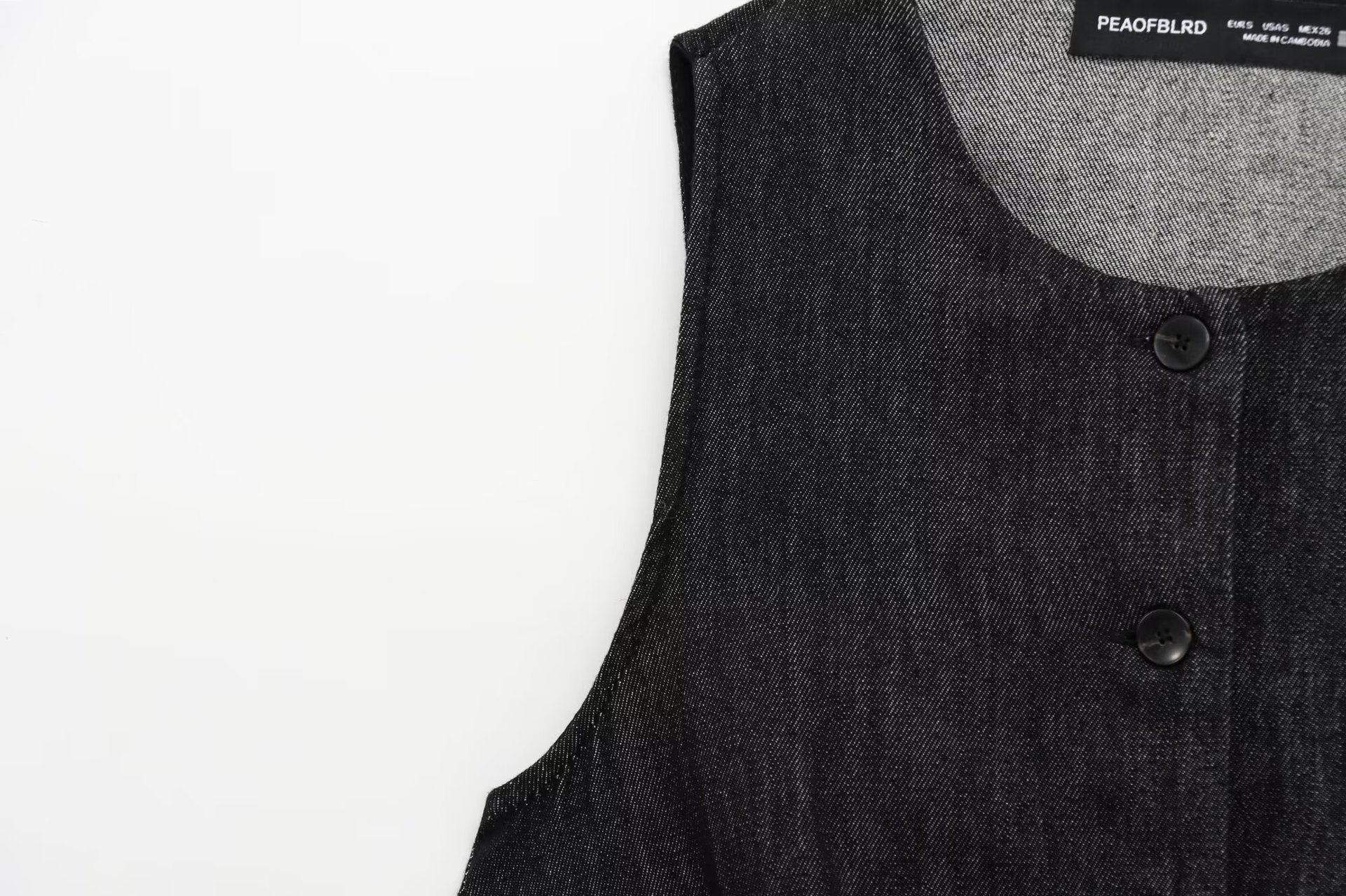 国境を越えた卸売ヨーロッパとアメリカの新しいスタイルのシンプルな無地の多用途シングルブレストデニムノースリーブラウンドネックベスト