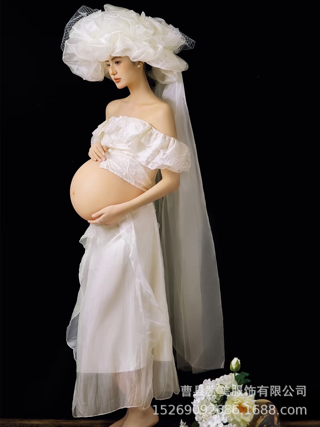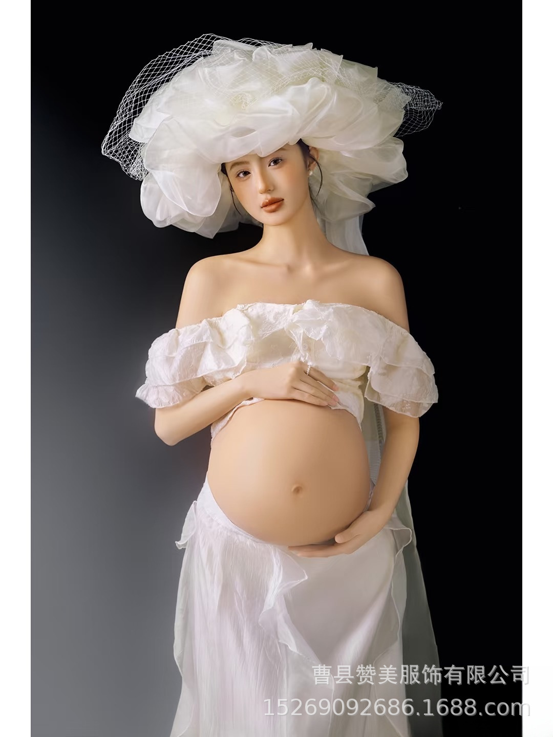 フォトスタジオの新しいスタイルのマタニティ写真撮影服、白いシンプルなスタイル、ハイエンドの妊娠中のママの屋内写真撮影、自宅での写真撮影