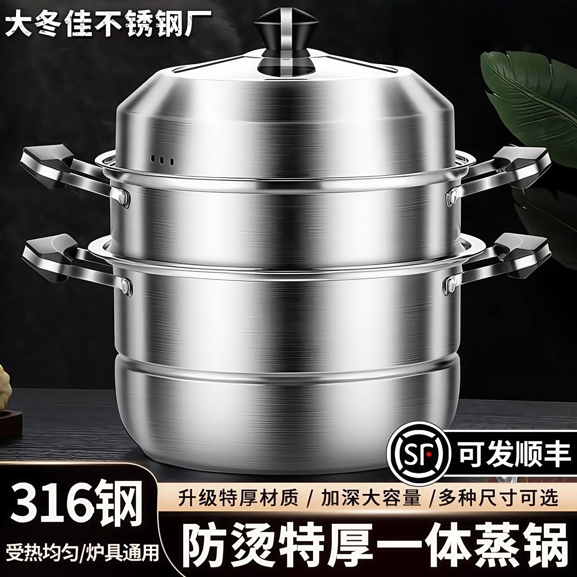 蒸し器家庭用二層三層316ステンレス鋼厚みのある蒸し器学生寮食堂用特厚煮込み鍋