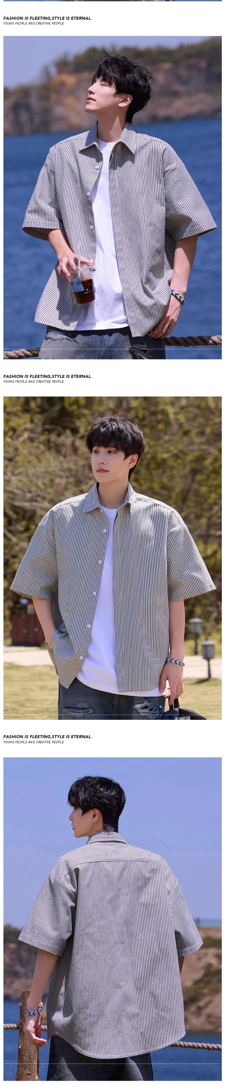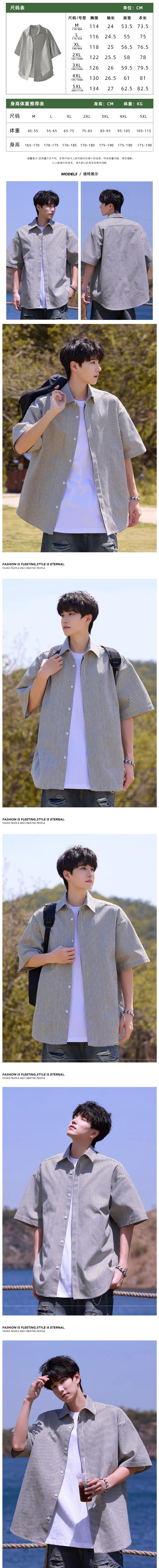 ストライプシャツメンズ半袖夏薄手ルーズカジュアルラペルシャツボーイズトレンディブランド万能半袖トップス