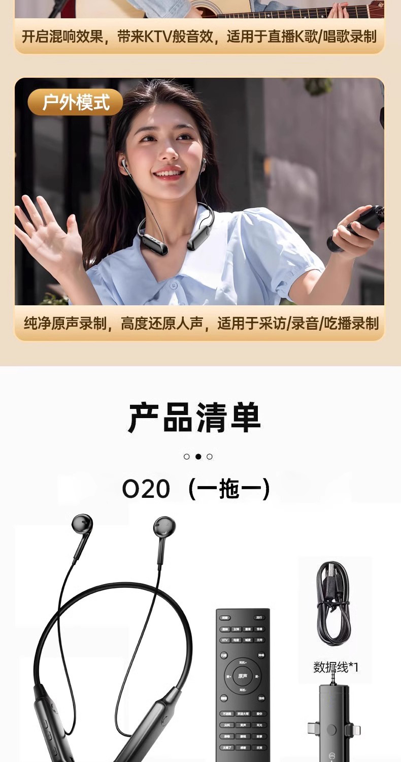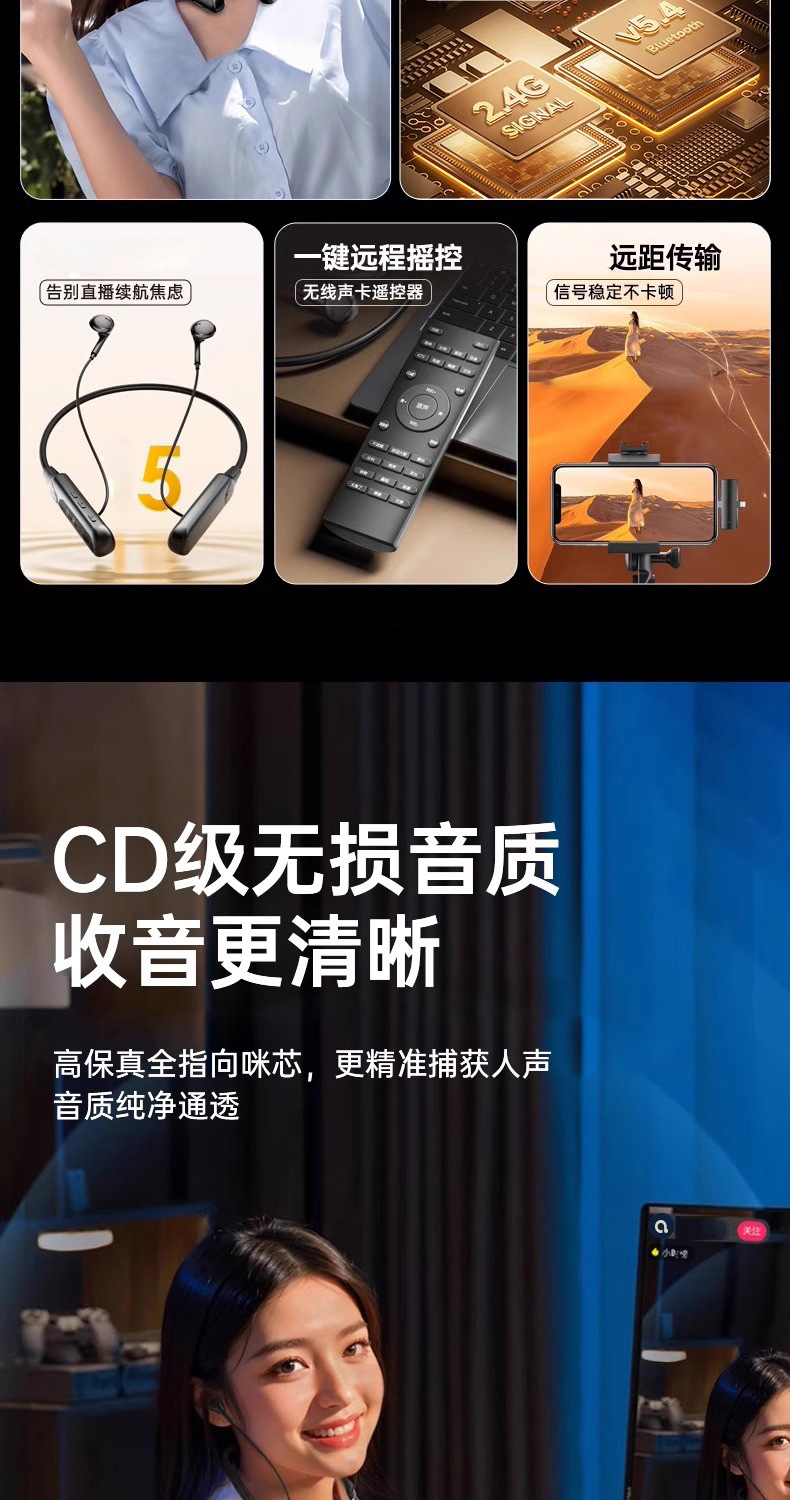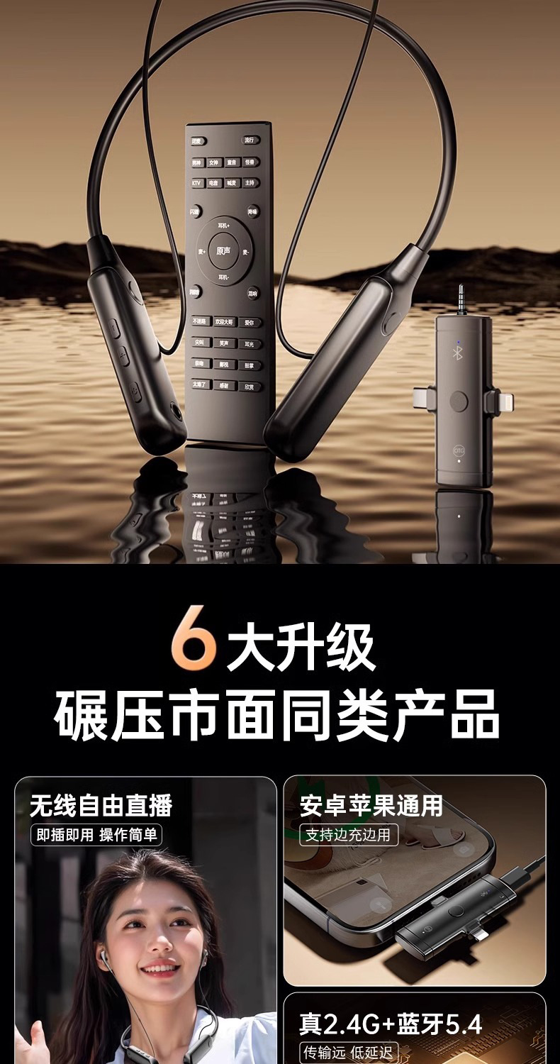 开放式耳挂式直播专用声卡耳机挂脖一体机无线麦克风话筒唱歌手机