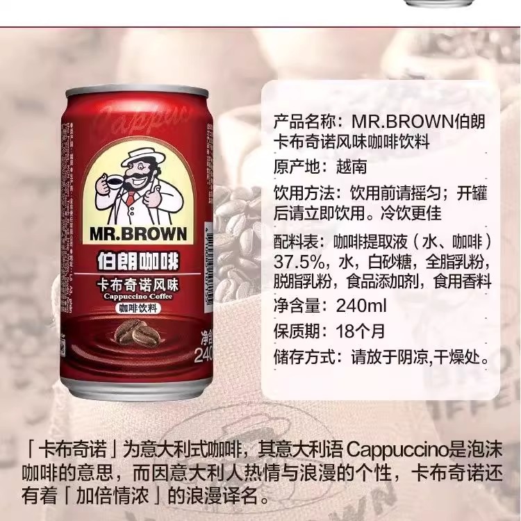 ブラウンコーヒー ブルーマウンテンフレーバー 240ml バニラカプチーノ チョコレートエスプレッソ インスタントドリンク オリジナル輸入品