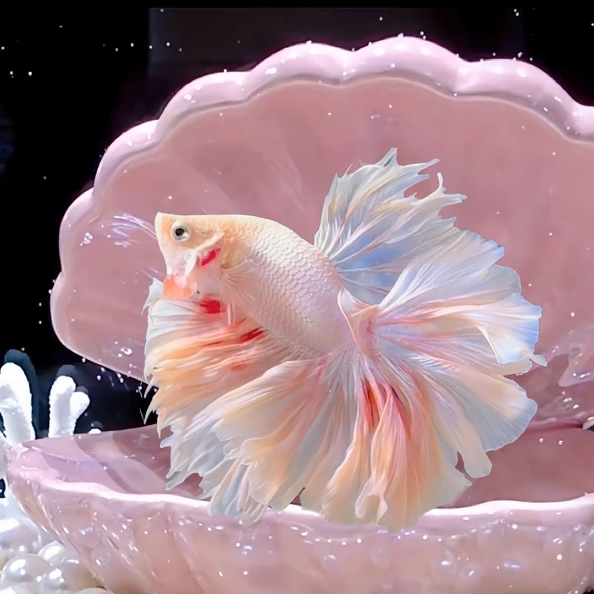 顺丰泰国斗鱼仙女款纯白半月超美网红小型淡水热带冷水观赏鱼好养
