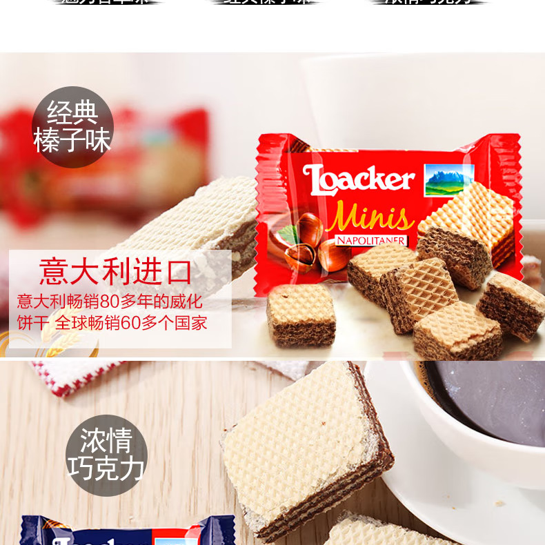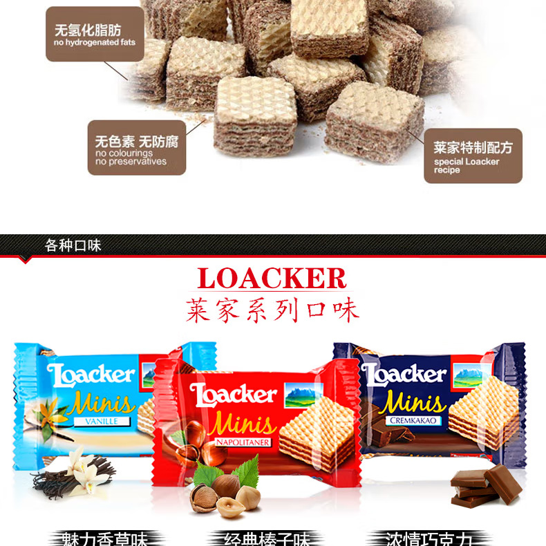 Loacker莱家威化ビスケット榛子味高級カジュアルスナック午後茶年物お土産卸売り