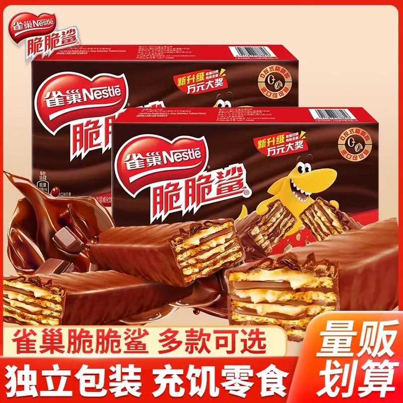 雀.巢脆脆鲨巧克力威化饼干446网红休闲食品儿童零食充饥年货礼盒