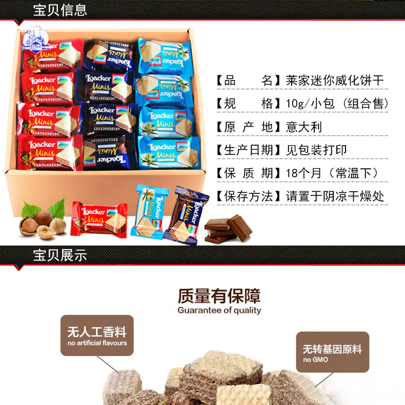 Loackerイタリア莱家威化ビスケット3.5g結婚お土産喜糖レジャースナックばら売り