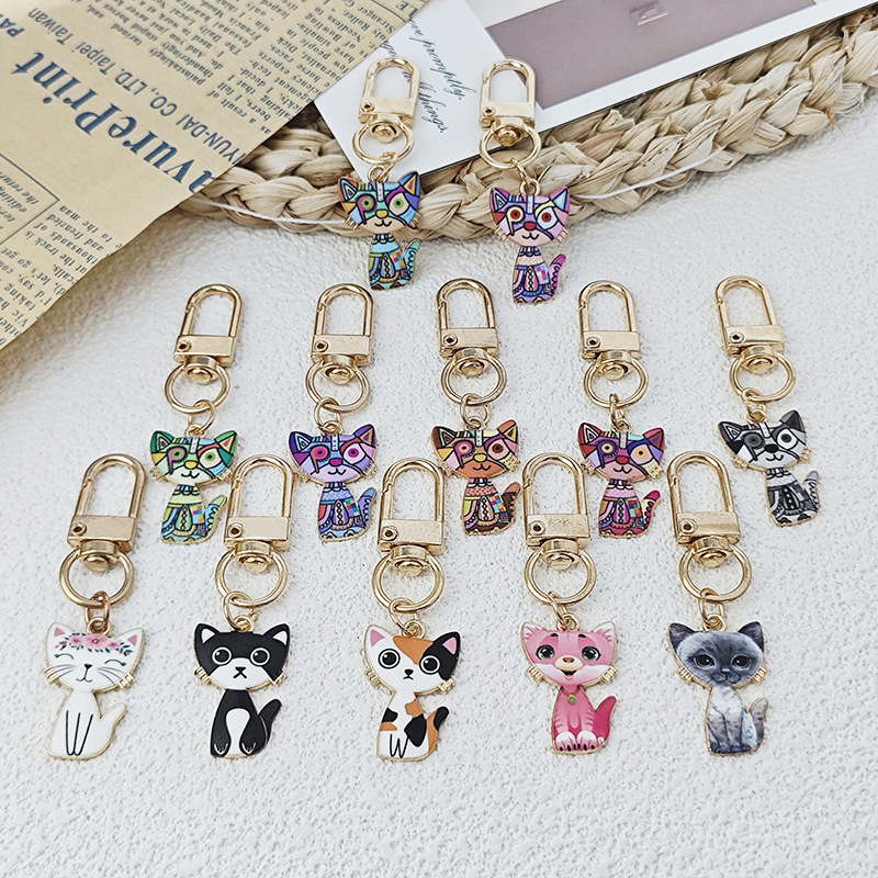 国境を越えた人気の機械式大きな顔の猫ペンダントクリエイティブかわいい合金ミニカーキーホルダー装飾卸売