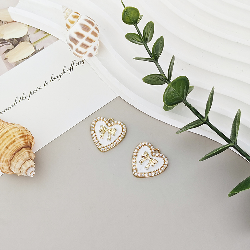新しいパールラブリボン diy キーホルダー携帯電話ペンダントアクセサリーブレスレットバッグ合金オイルジュエリー
