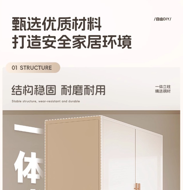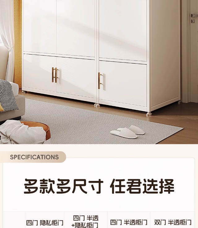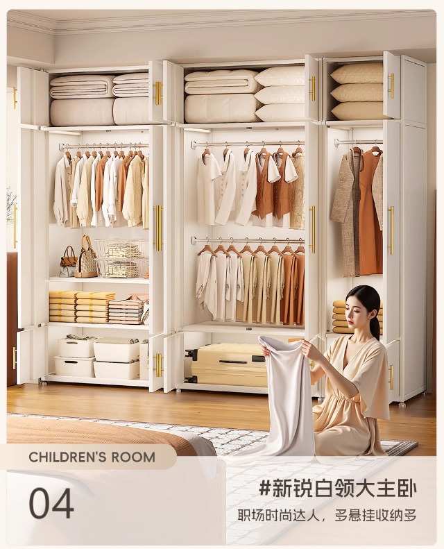 钢制衣柜家用卧室收纳柜法式奶油风储物柜大容量衣橱无甲醛铁皮柜