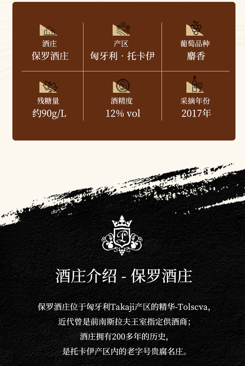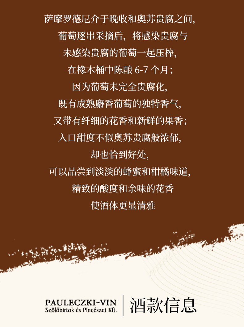 匈牙利保罗酒庄托卡伊萨摩罗德尼贵腐酒tokaji甜白葡萄酒2017年