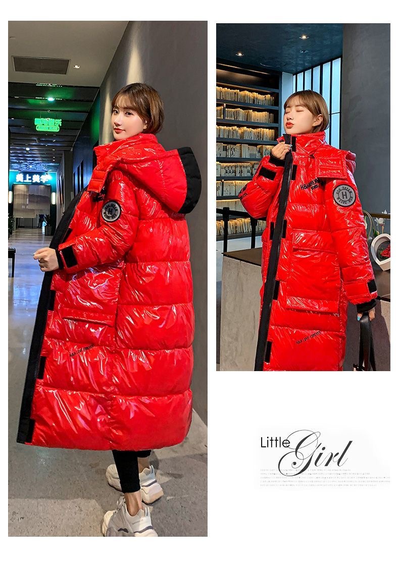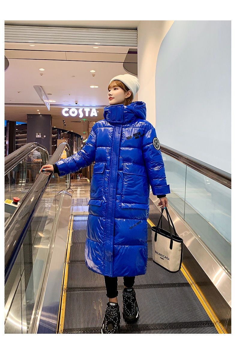 女性のための洗濯不要の光沢のあるダウンコットンコート 2025 新しい冬膝丈の長いコットンコート厚みのある屋外ボディスーツ