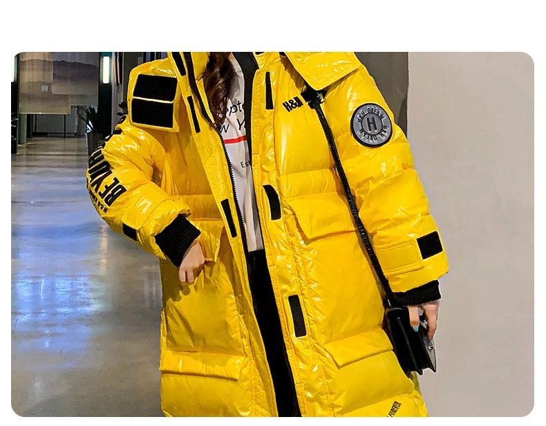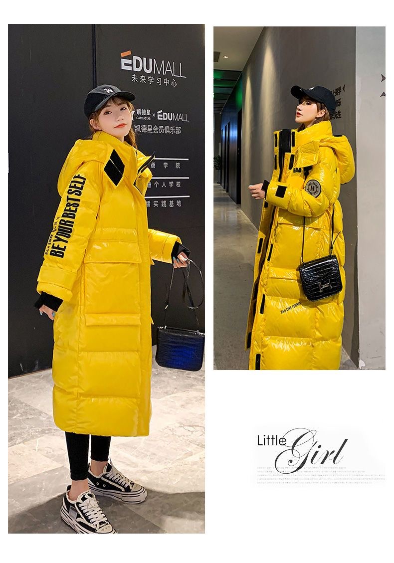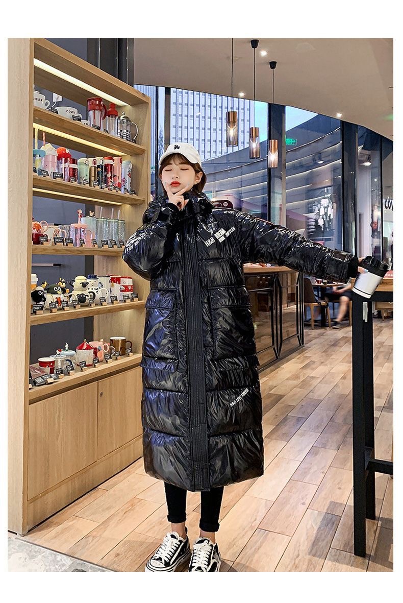光沢のある洗濯不要のダウンコットンコート、女性用ミドル丈韓国風ルーズウィンターコート、2025年新トレンド