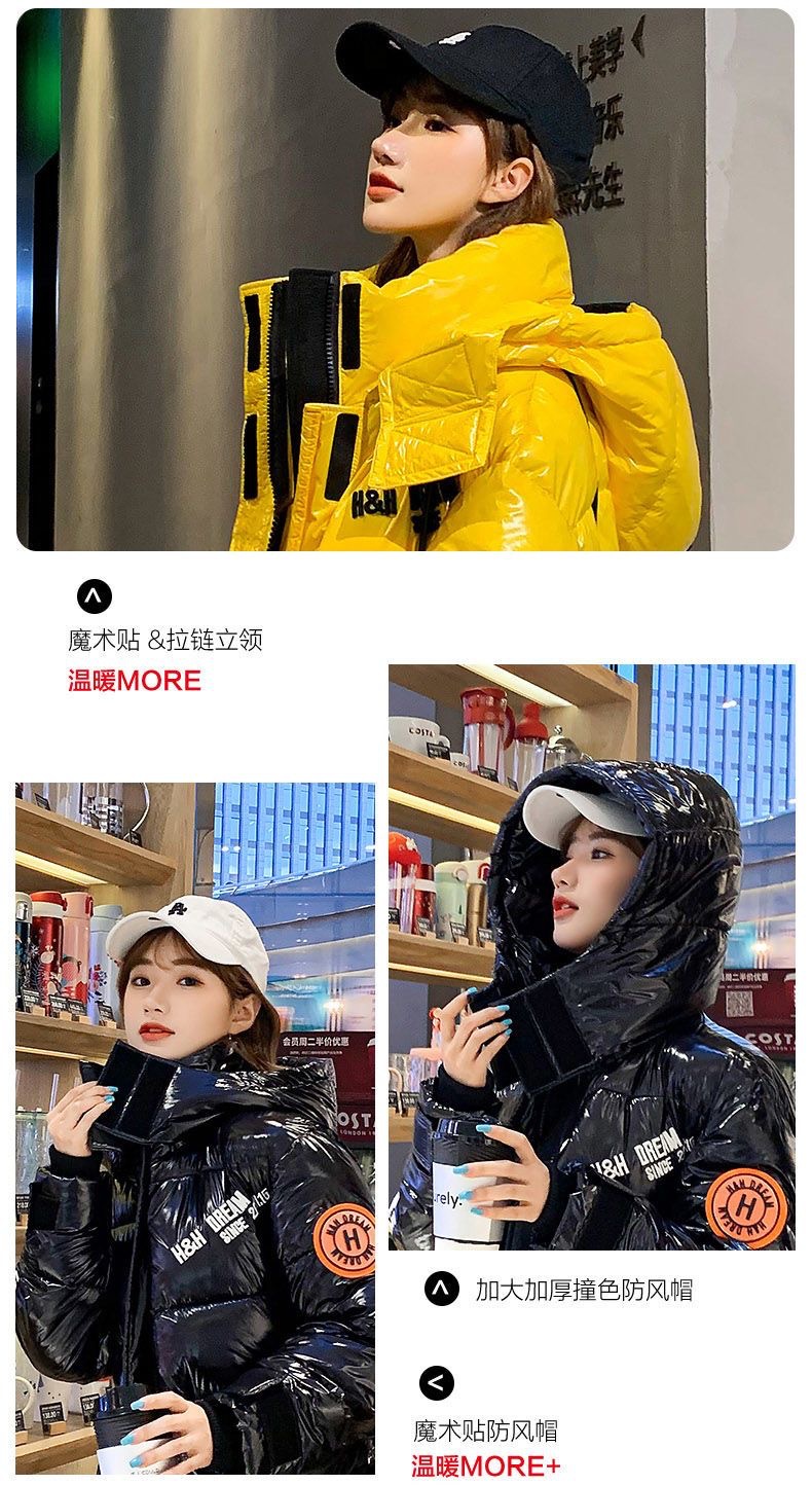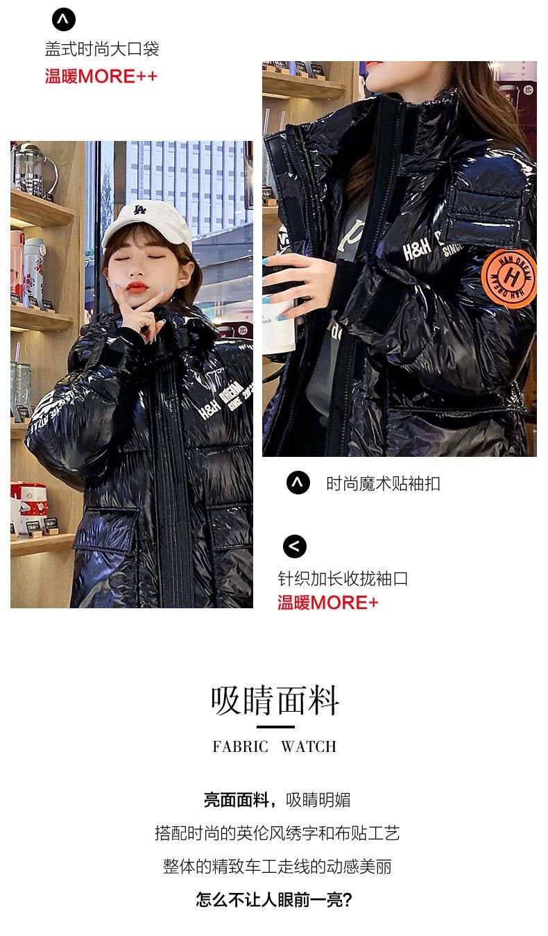 光沢のある洗濯不要のダウンコットンコート、レディースミドル丈、韓国風ゆったり冬用ジャケット、2025年新作トレンド