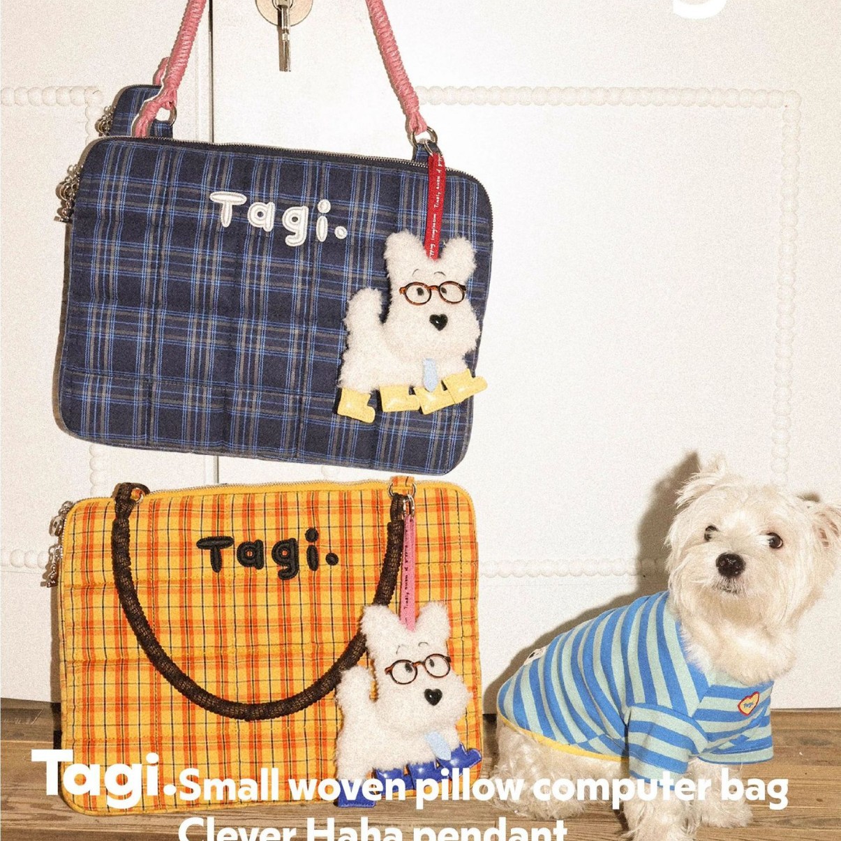 Tagi哈兜編み小枕充綿刺繍手提げ片肩防打防振パソコンバッグノートバッグ格子