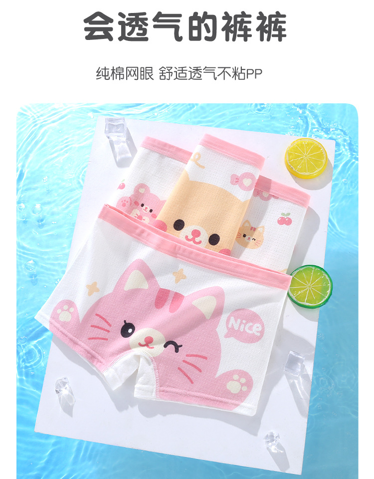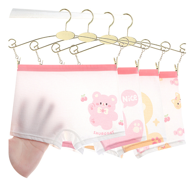 夏用メッシュアイスシルク女の子快適抗菌中型および大型子供用女の子クールボクサーブリーフ柔らかく通気性のあるボクサーブリーフ