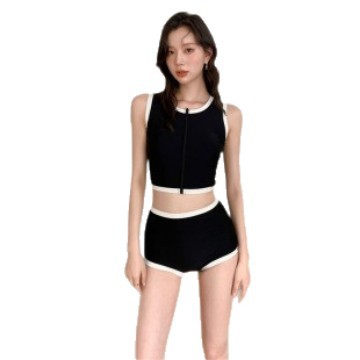 HUEG極酷平角運動ワンピース水着女温泉半袖保守高級感があります。