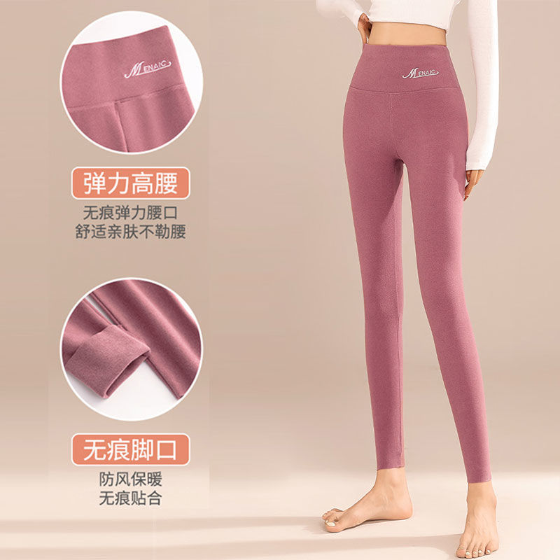 双面德绒发热加绒打底裤秋冬内穿高腰紧身无痕高弹防寒薄绒秋裤女