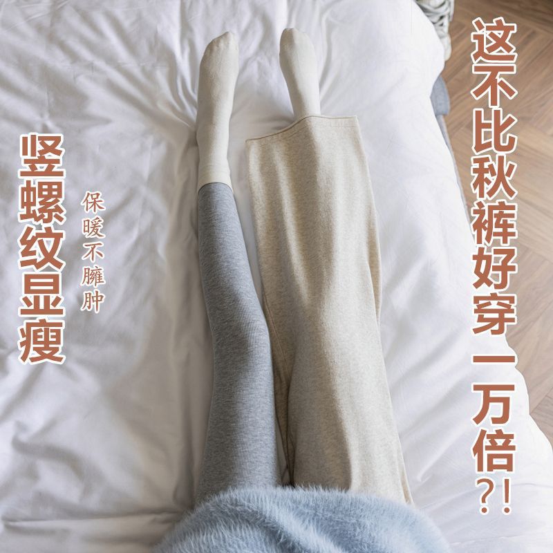 螺纹加绒打底裤外穿加厚紧身显瘦无痕高弹力发热保暖秋裤女秋冬季