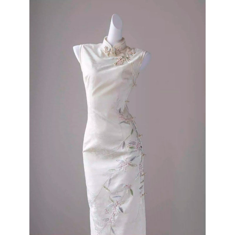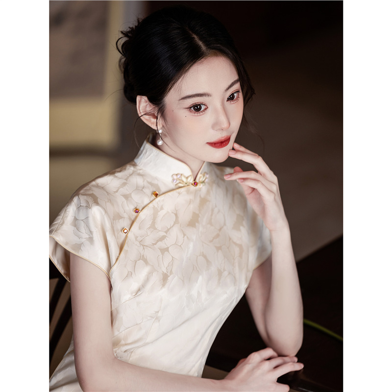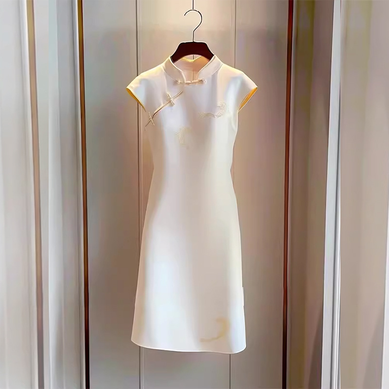 新しい中国風のライトナショナルスタイルのハイエンドの絶妙で控えめな雰囲気の白いドレス女性の改良されたチャイナドレス2025新しい夏
