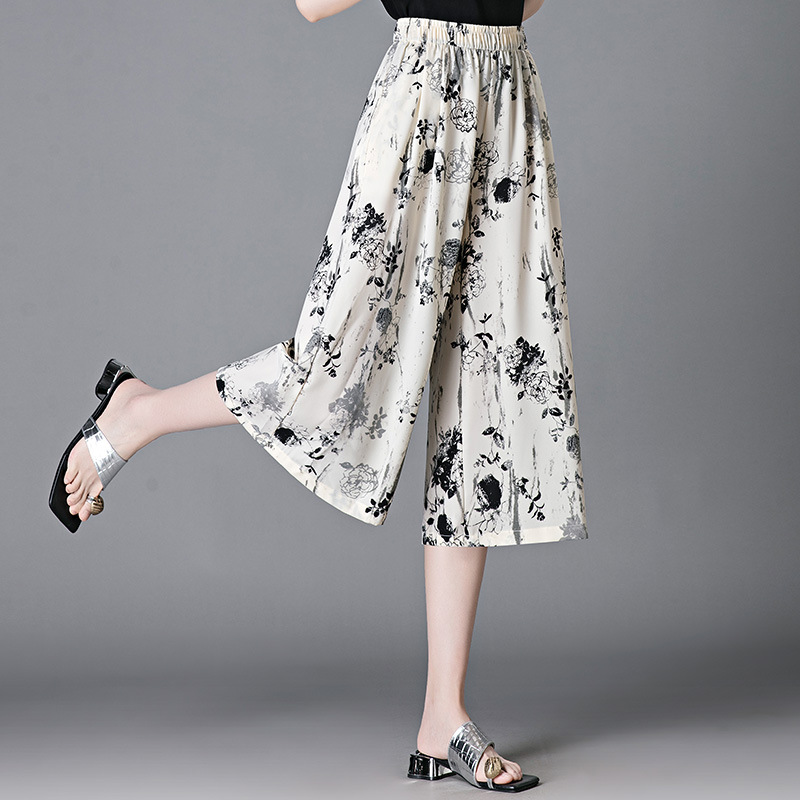 アイスシルクキュロットレディースサマーカプリパンツ2025新作ハイウエストルーズドレープママパンツワイドレッグパンツ8点パンツ