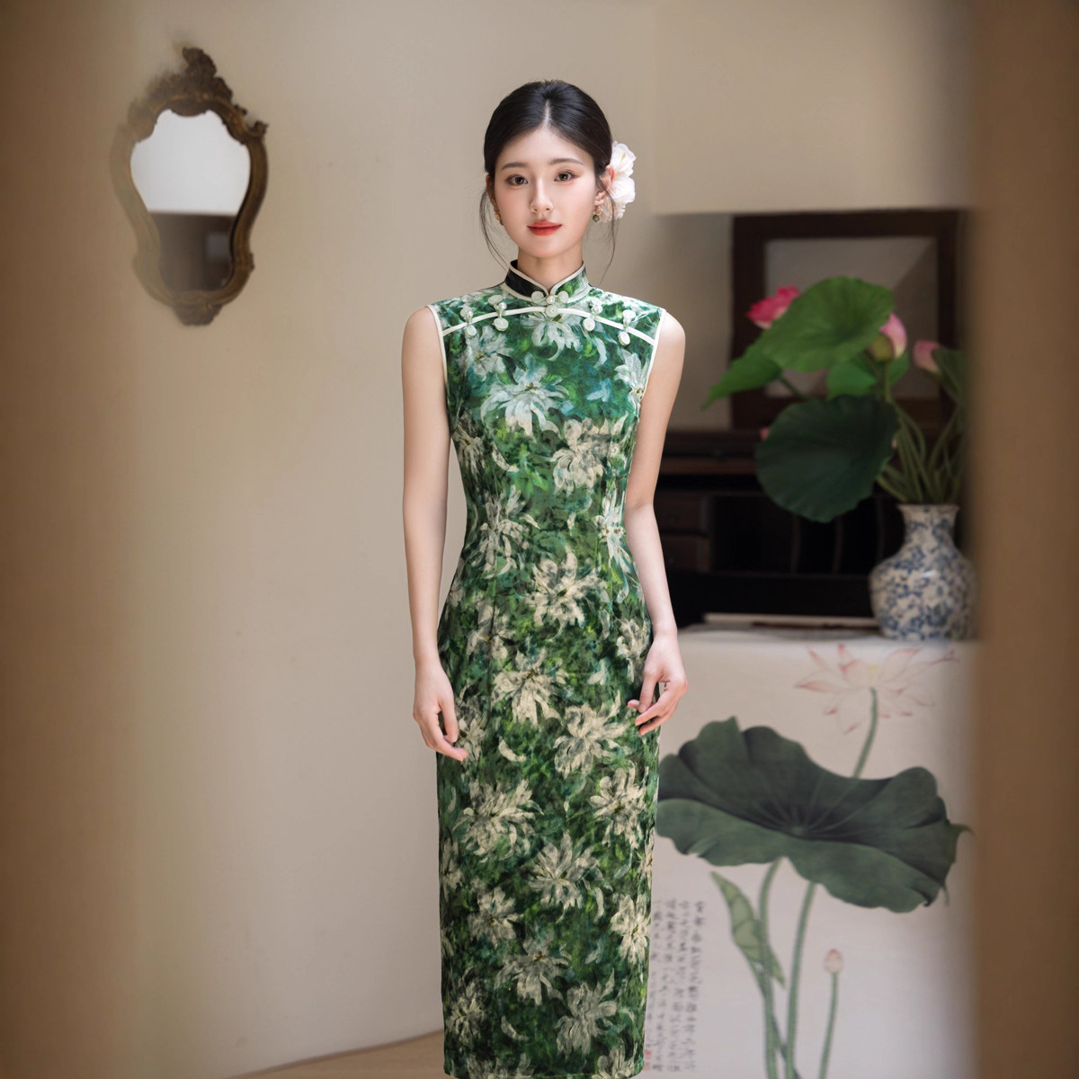 江南絮 |复古丝绒旗袍老上海高级优雅修身显瘦气质连衣裙早秋日常