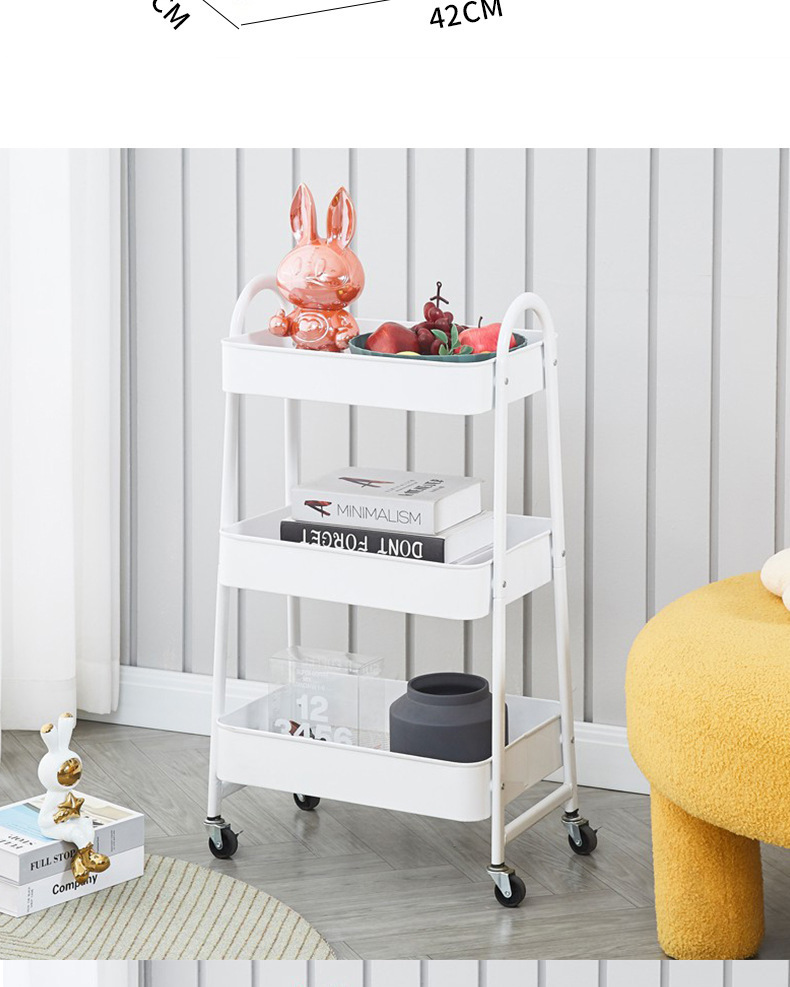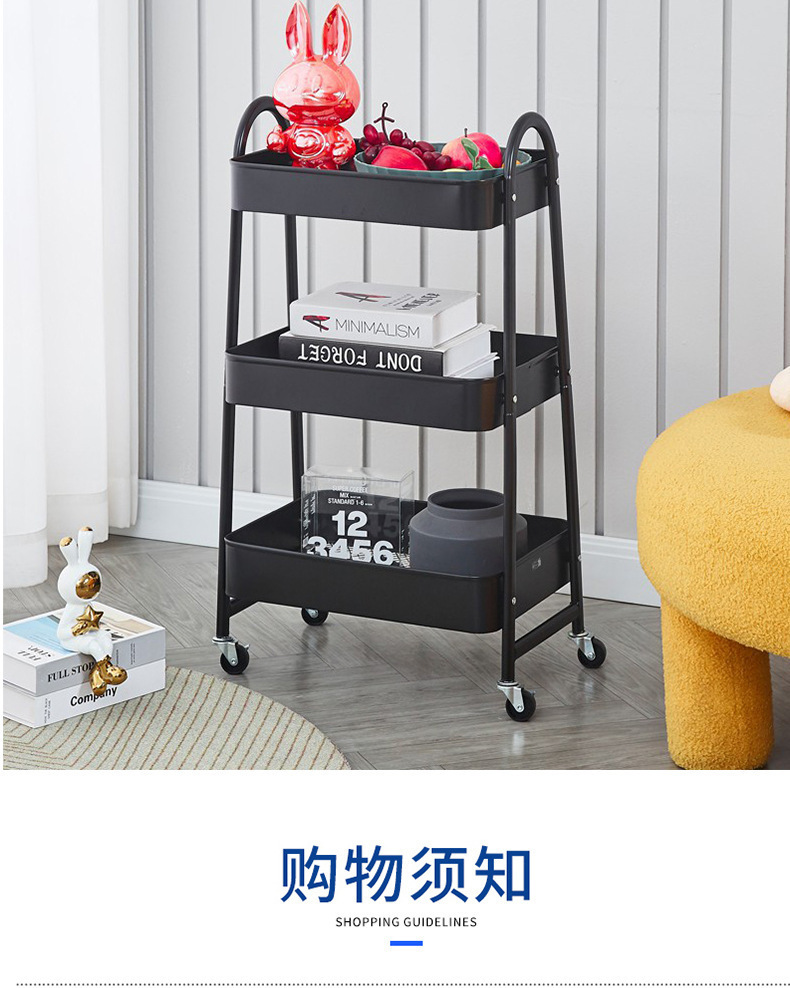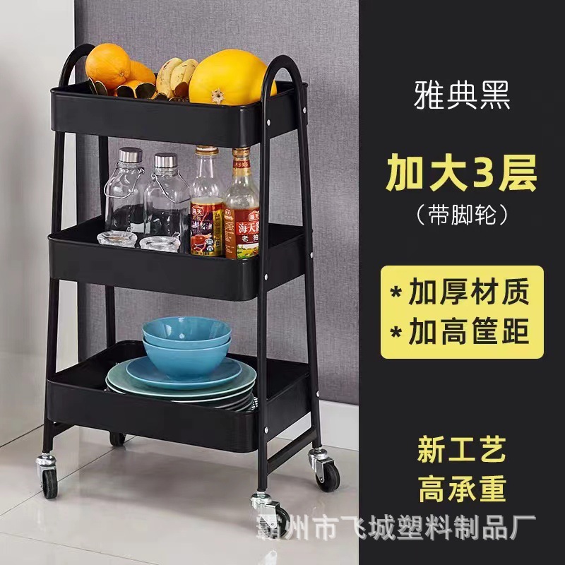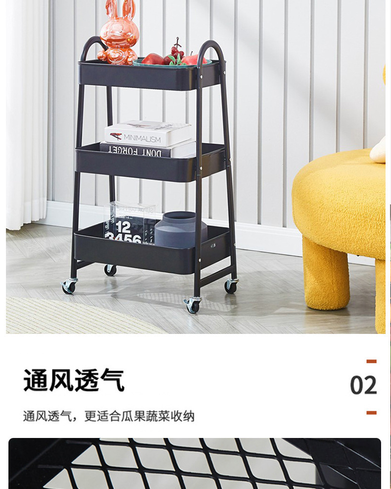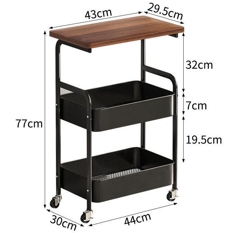 可移动家用多层厨房客厅碳钢收纳架零食收纳车带桌板小推车置物架