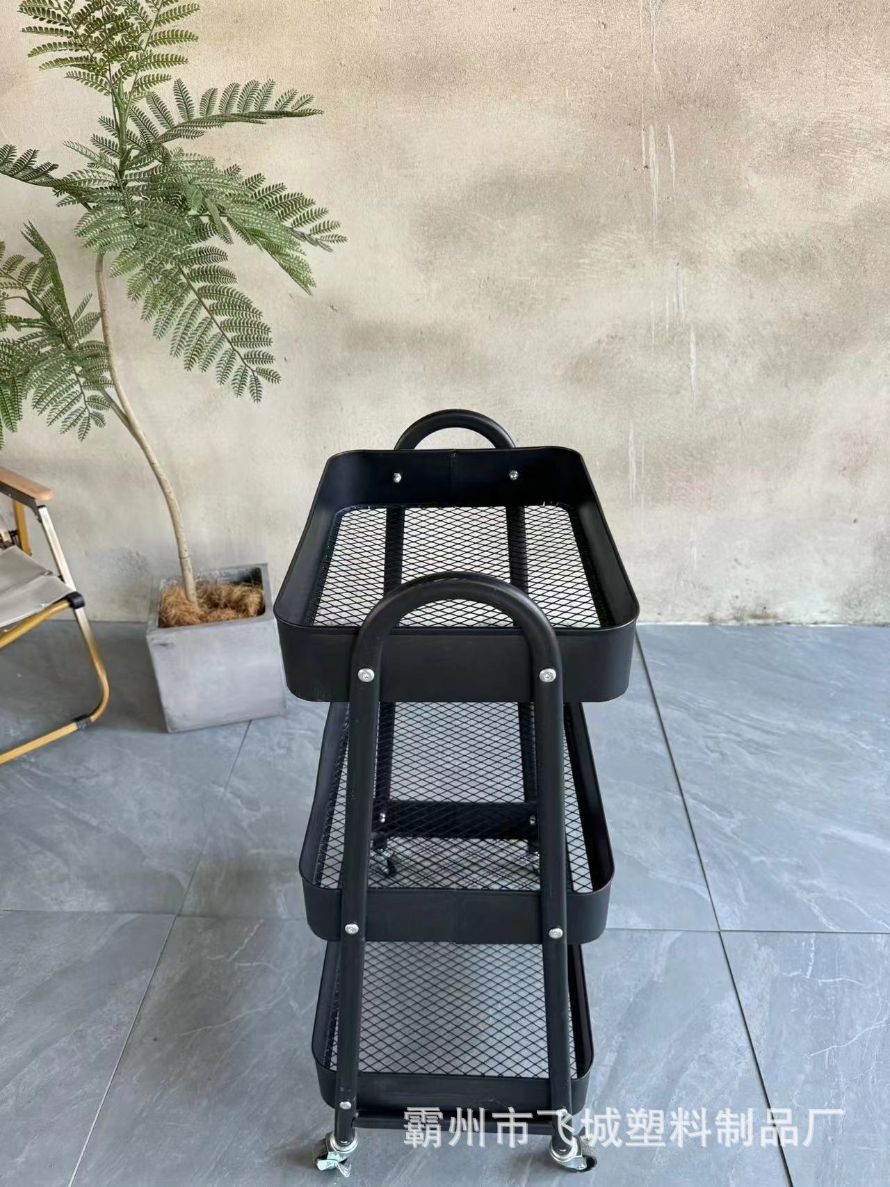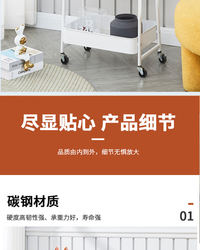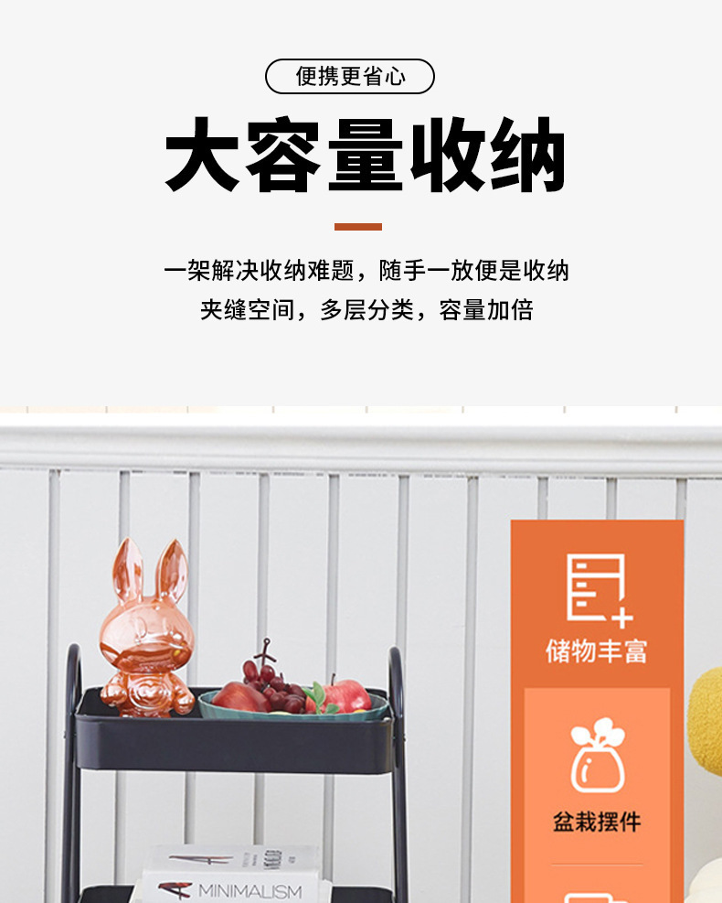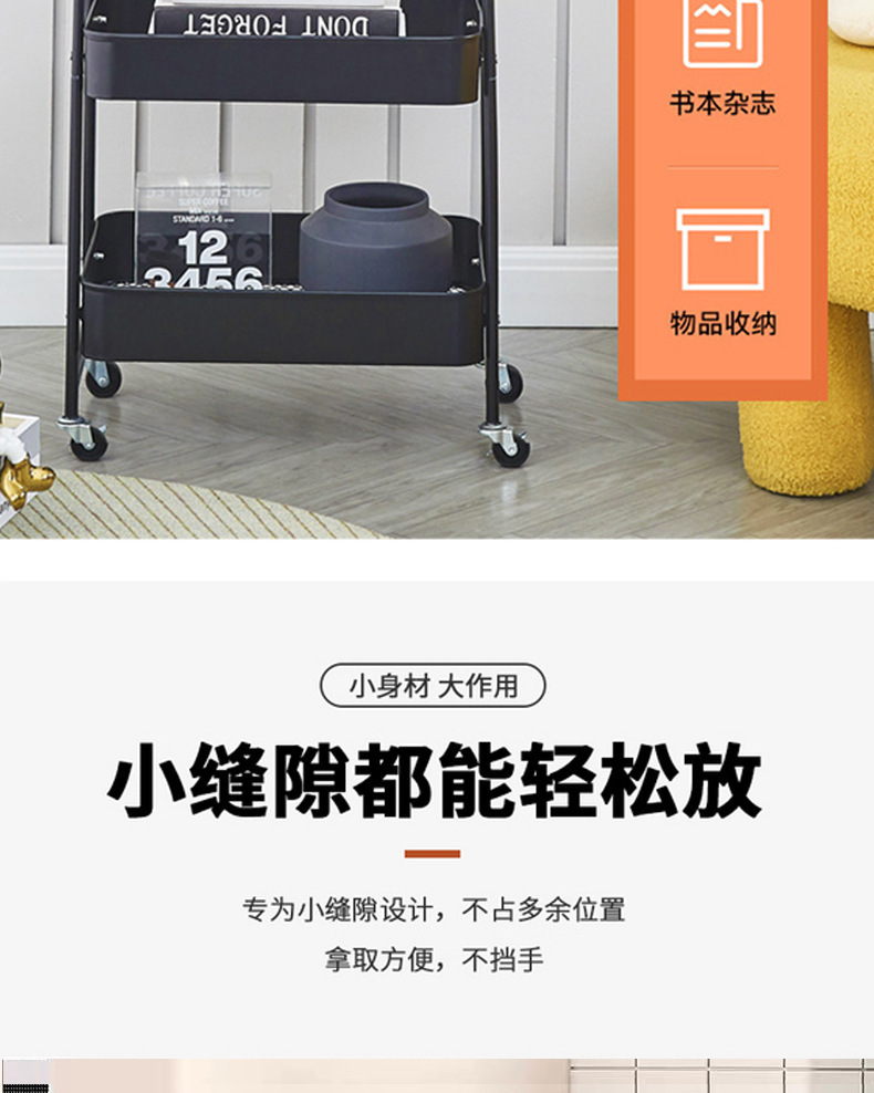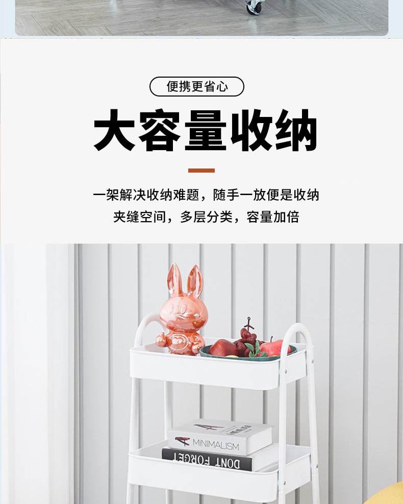 可移动家用多层厨房客厅碳钢收纳架零食收纳车带桌板小推车置物架