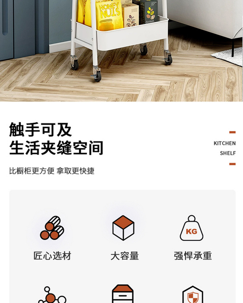 トロリー収納ラック床置きキッチン寝室バスルームモバイル多層寝室ベッドサイド収納収納ラッククロスボーダー