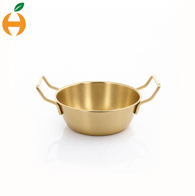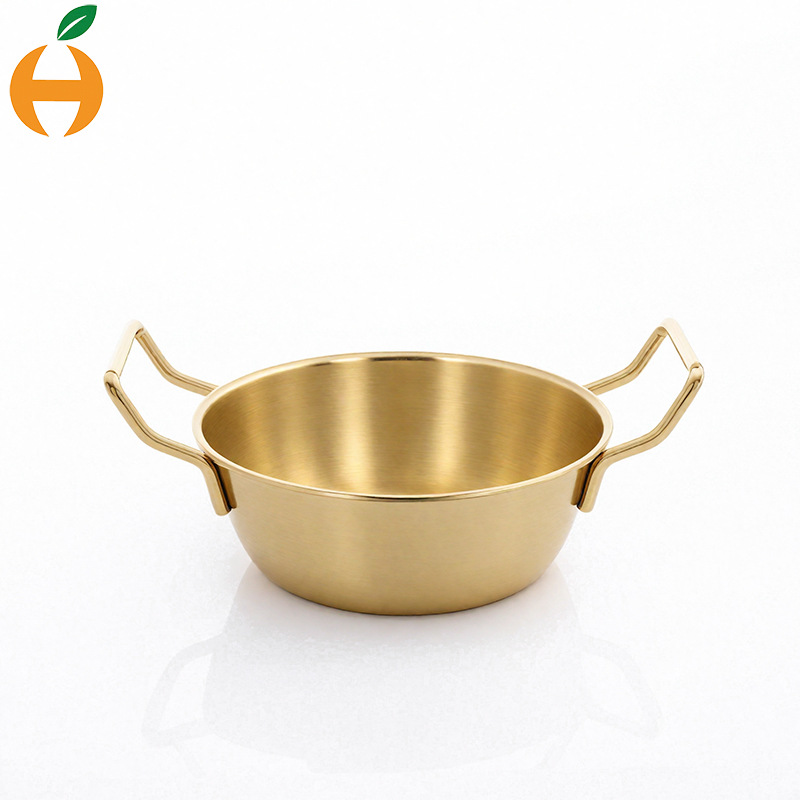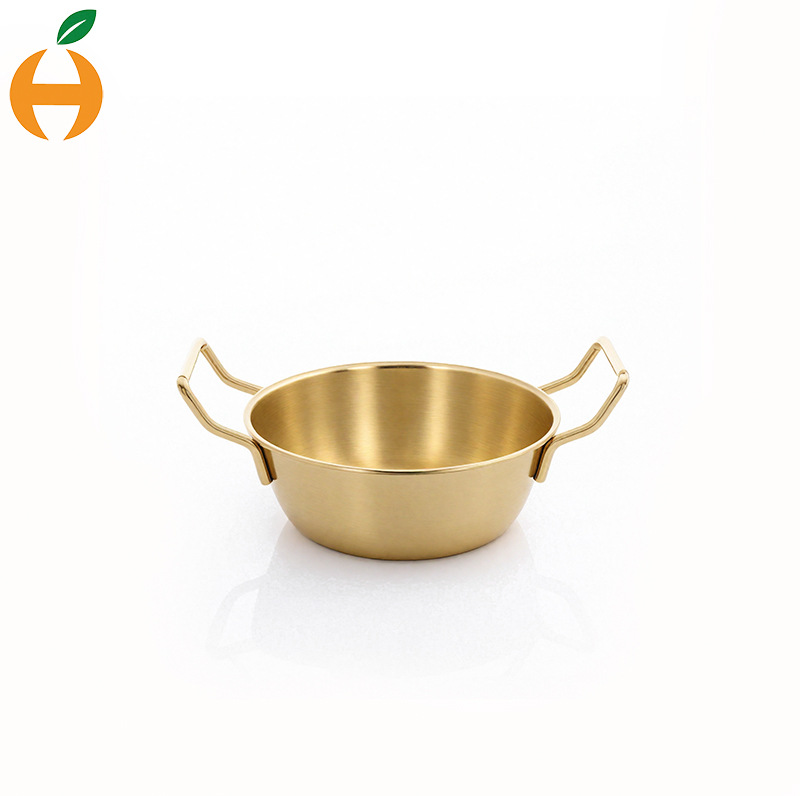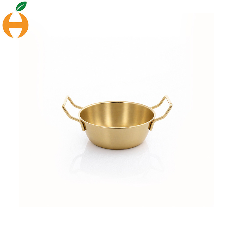 304韓劇網紅韓式双耳米酒碗ステンレス金色サラダ碗軽食皿ポテト碗小食籠