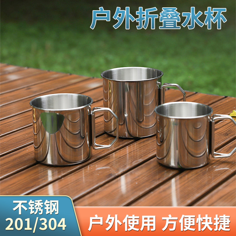 304 ステンレス鋼ウォーターカップ屋外折りたたみカップ刻印キャンプカップキャンプコーヒーカップポータブルカップキャンプカップ