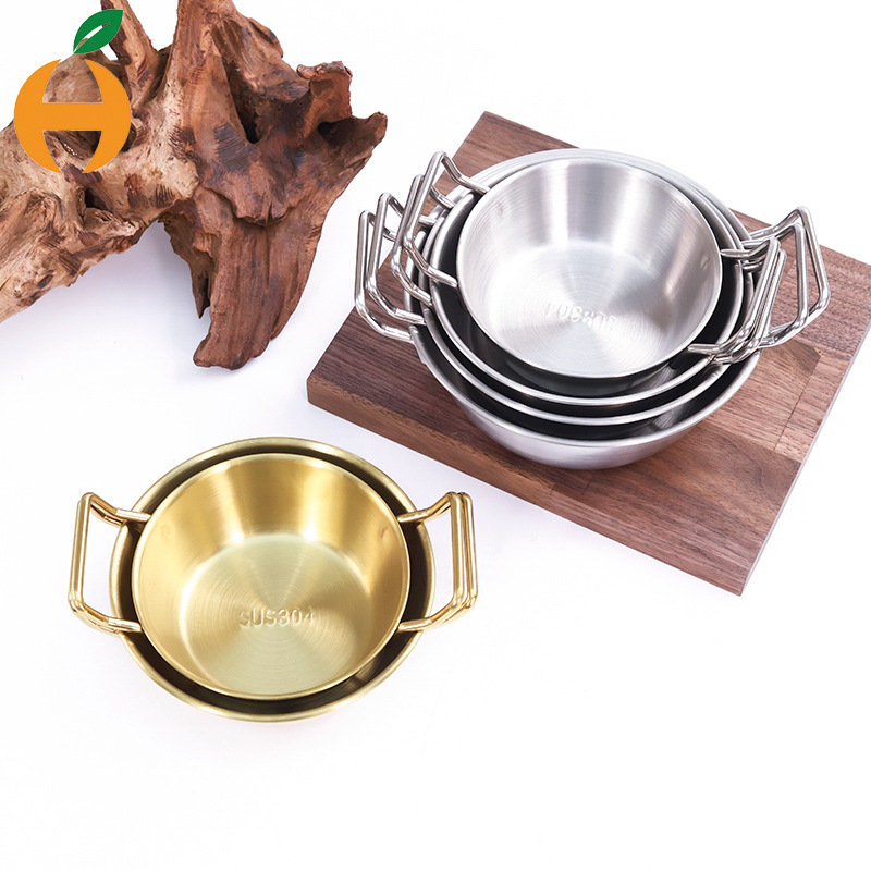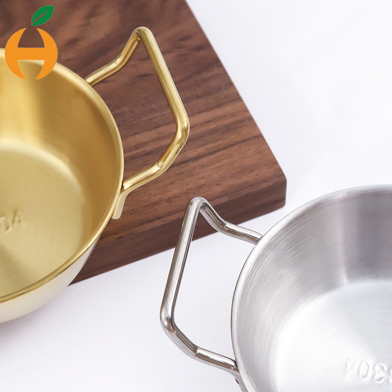 304ステンレスの米酒の碗の双耳の取っ手の韓国式の料理の碗の調味料の軽食の碗の金の銀色の304碗の韓国式