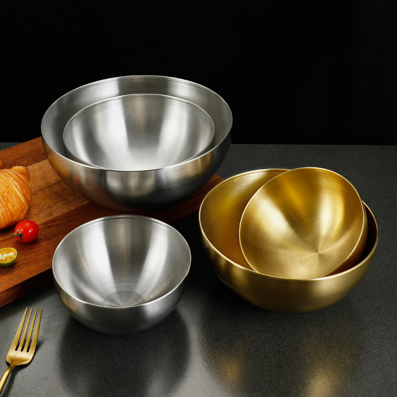 韩式沙拉碗不锈钢圆形大号碗冷面碗拉丝多用料理碗金色拌饭碗跨境