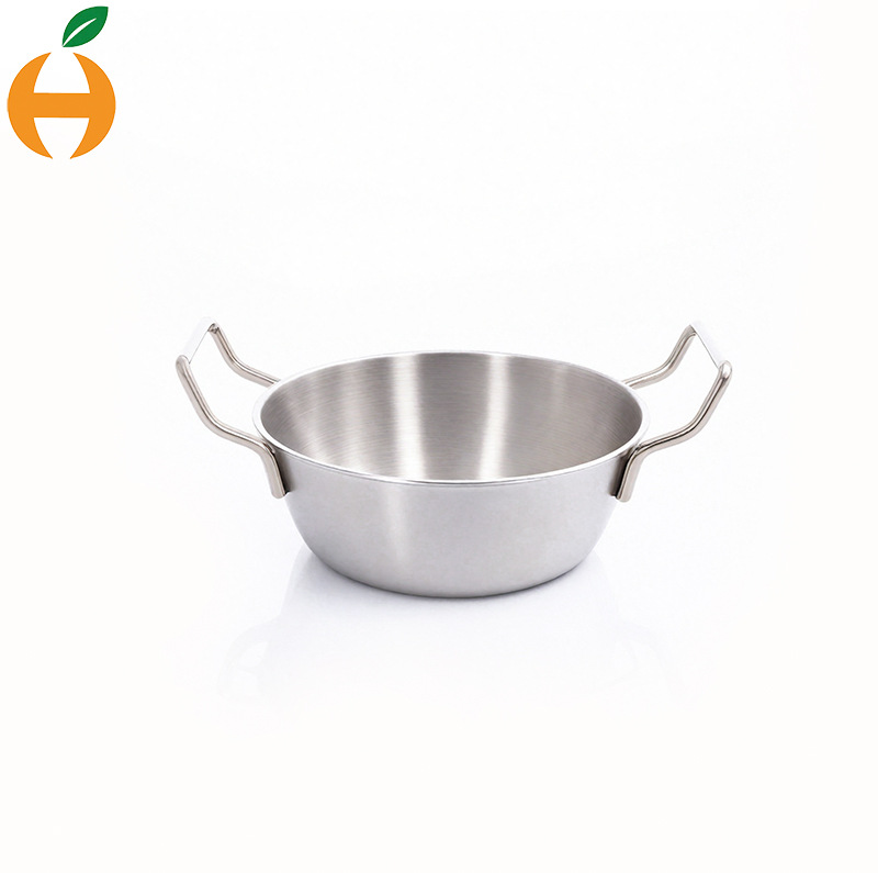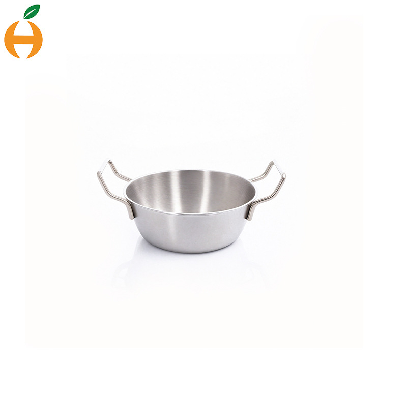 304ステンレスの泡の碗の韓国式の双耳の軽食の野菜のサラダのナットの粉の冷麺の海鮮の鍋の碗は取っ手を持ちます。