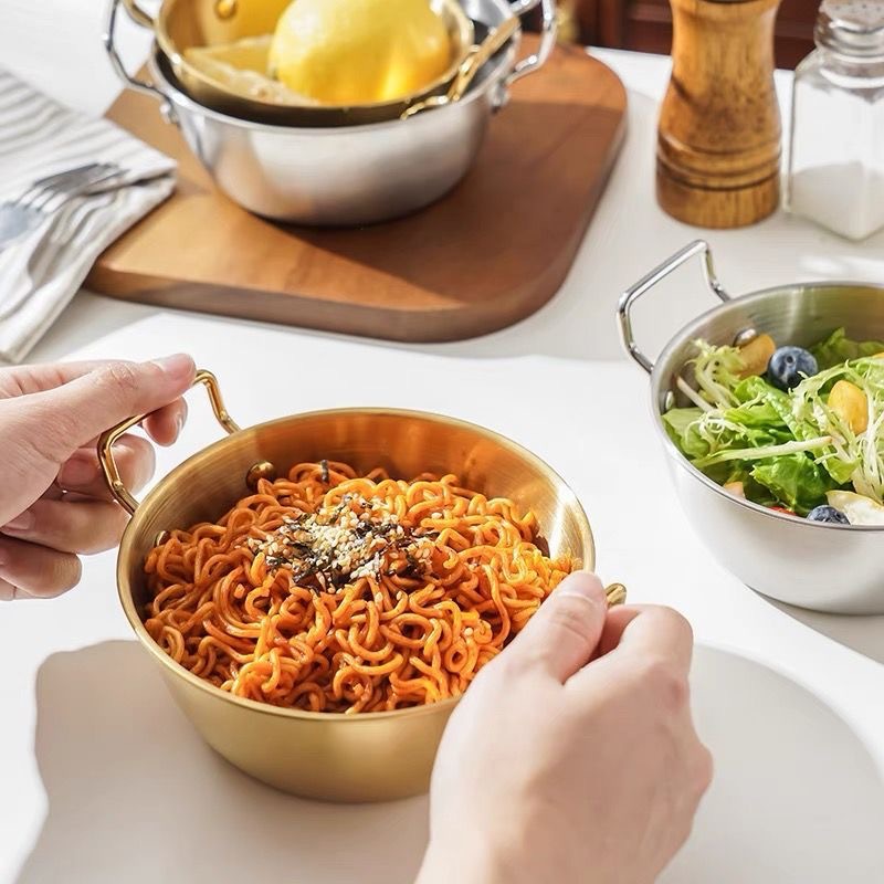 304 ステンレス鋼インスタントラーメンボウル韓国双耳軽食野菜サラダカタツムリヌードル冷麺シーフードポットボウルハンドル付き