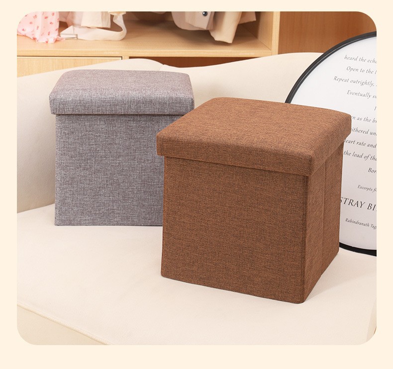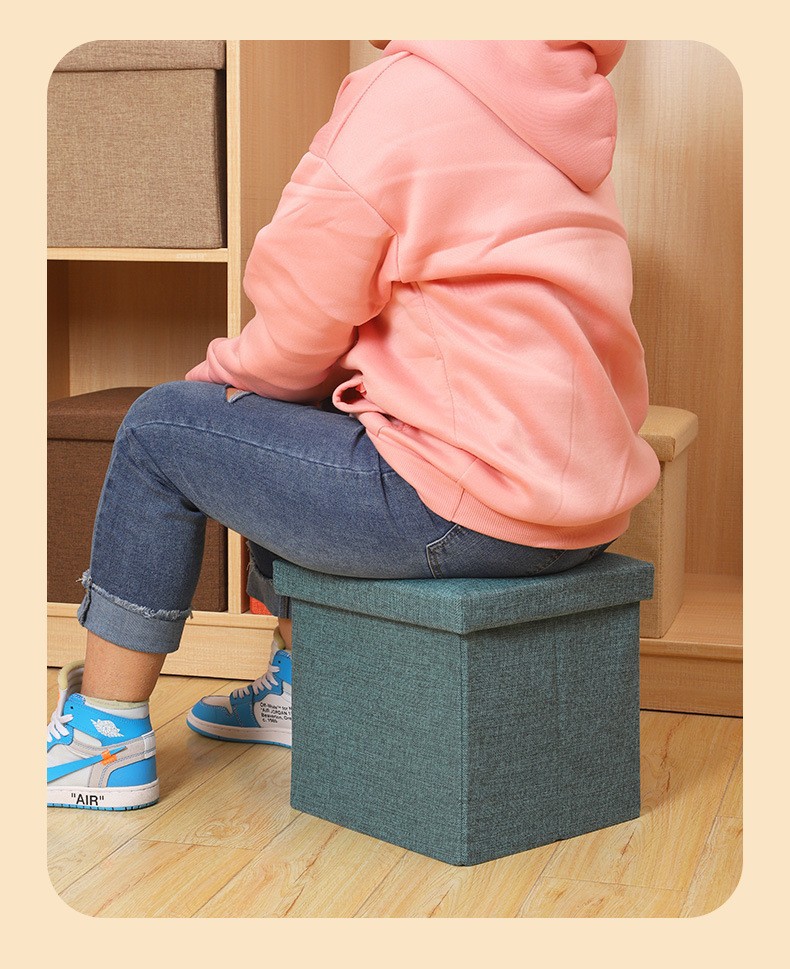 メーカー卸売綿とリネンの収納スツール多機能折りたたみ布製収納スツールは、収納スツールの収納ボックスに座ることができます