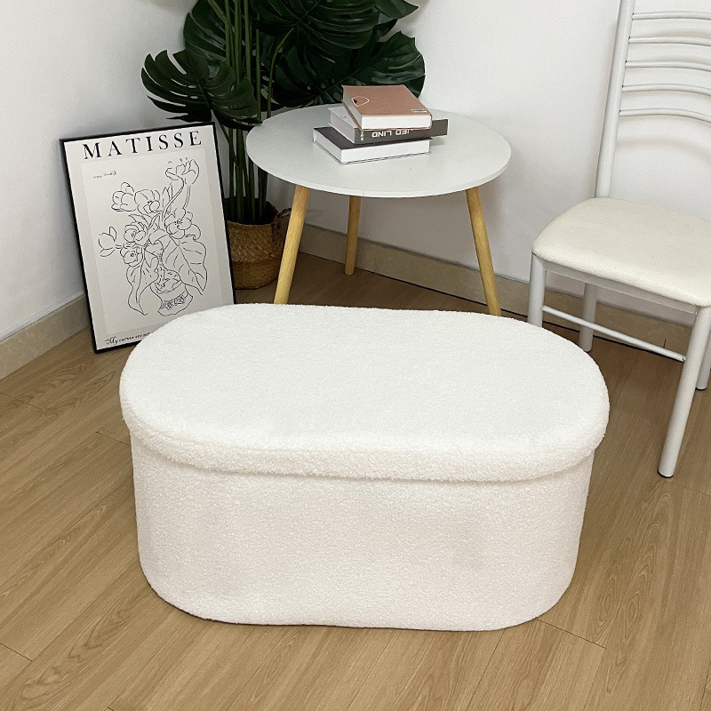 テディベルベットオーバル収納スツール、かわいい折りたたみ収納スツール、座ることができる収納スツール、おもちゃの収納、家庭用靴交換スツール